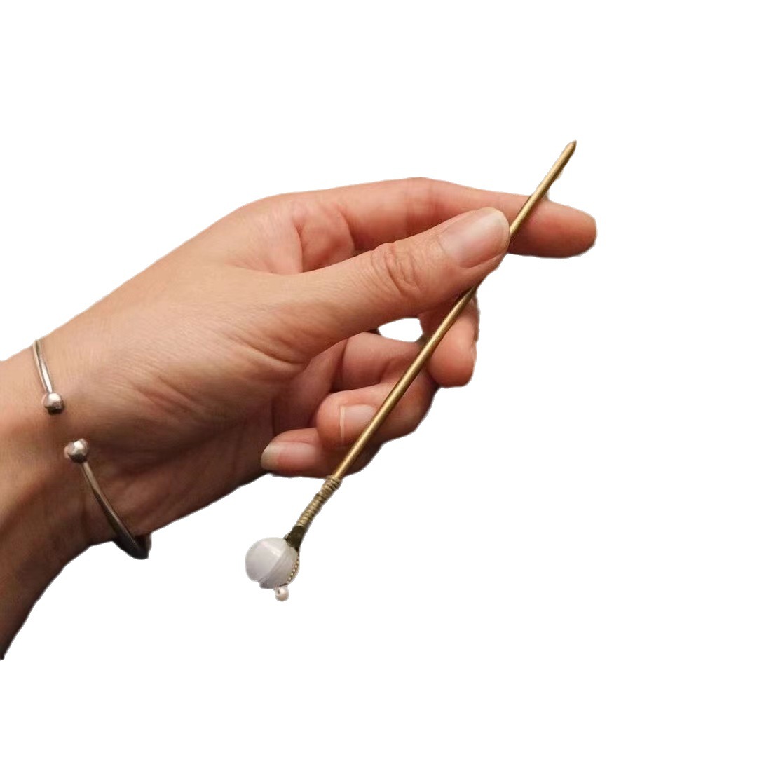 手工原创清冷素雅禅意古风发簪丸子头日常盘发簪子古铜色短簪蓝花