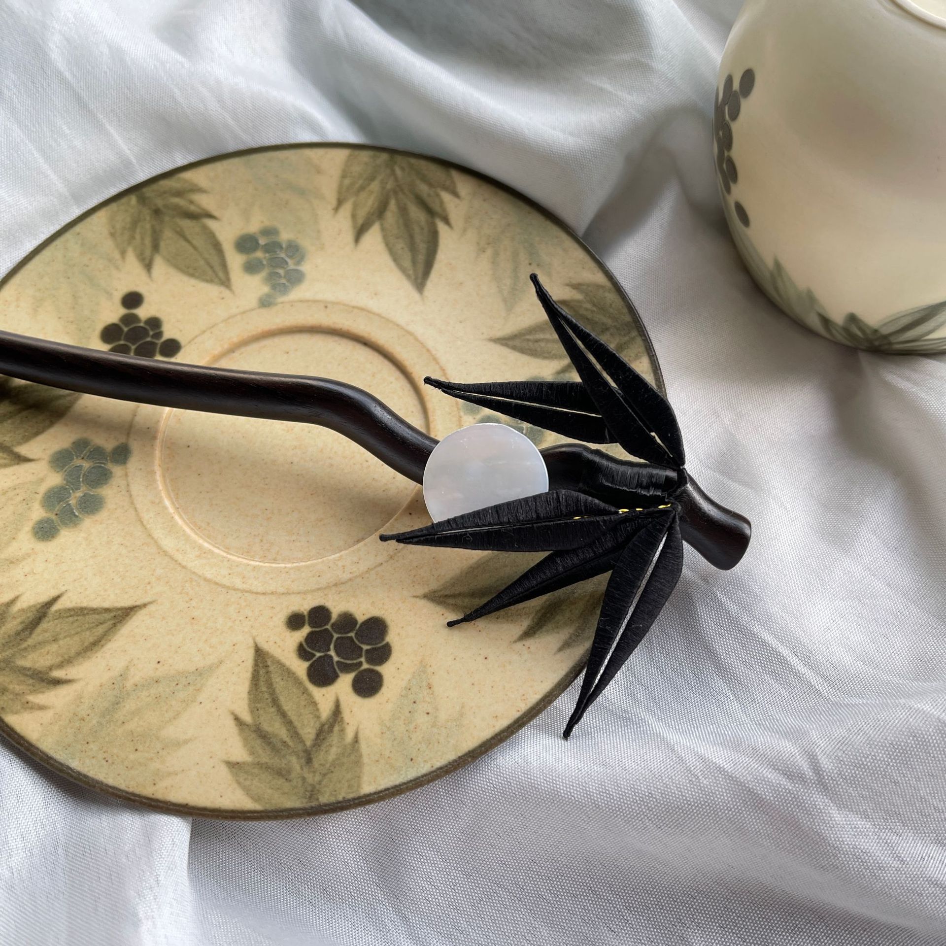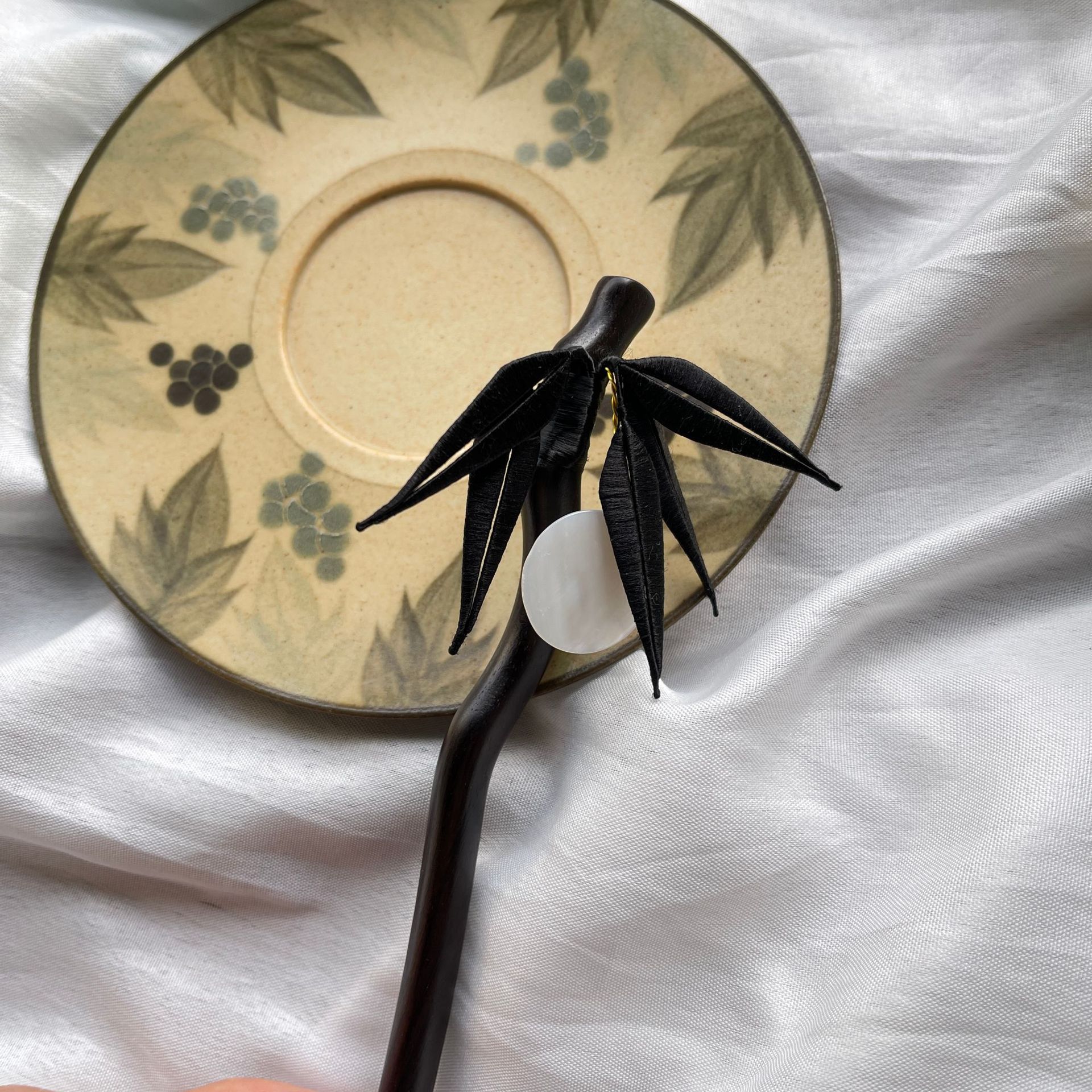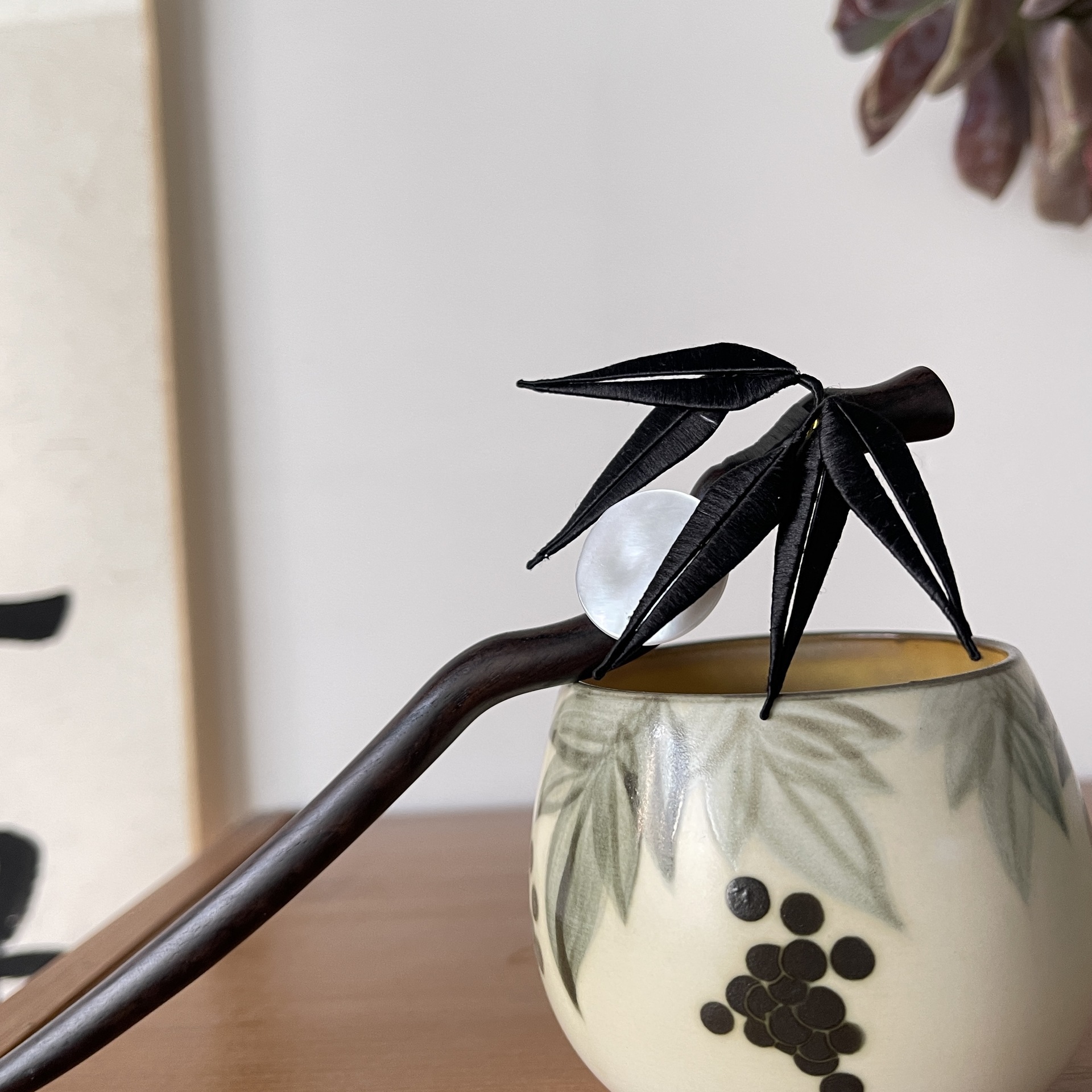 原创新中式非遗缠花蚕丝线发簪水墨竹叶檀木簪古风汉服旗袍盘发