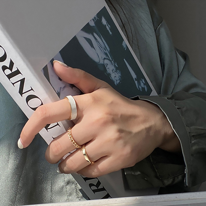 简约气质百搭滴釉麻花金属开口戒指女新款个性三件套可调节