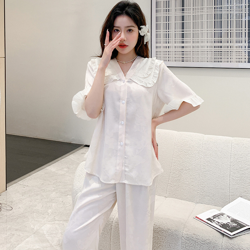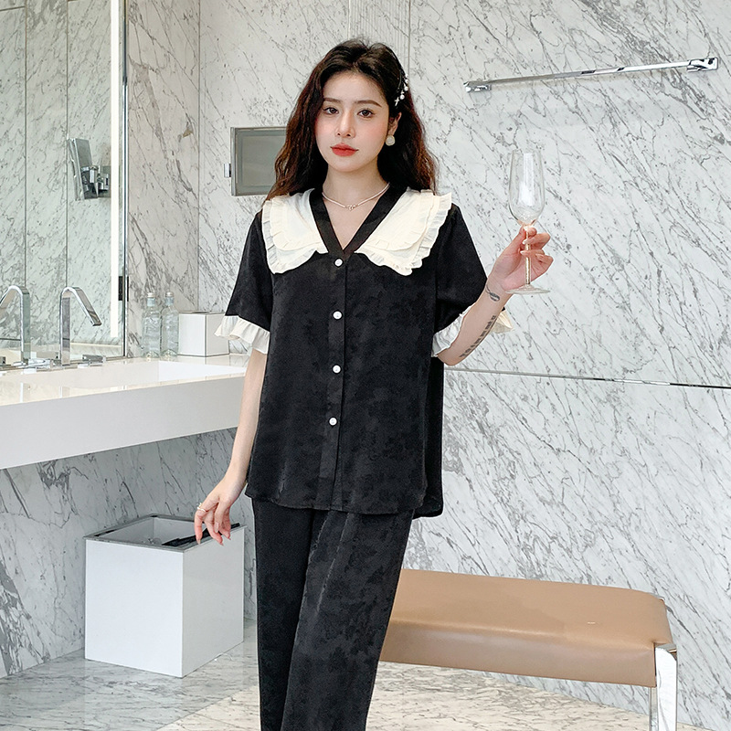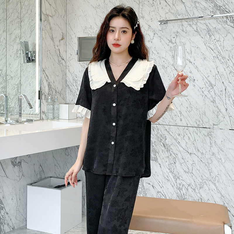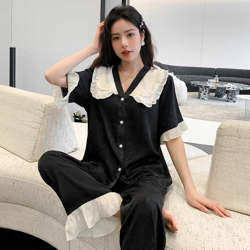 提花冰丝缎面睡衣套装透气薄款家居服高级感可外穿短袖睡衣女夏