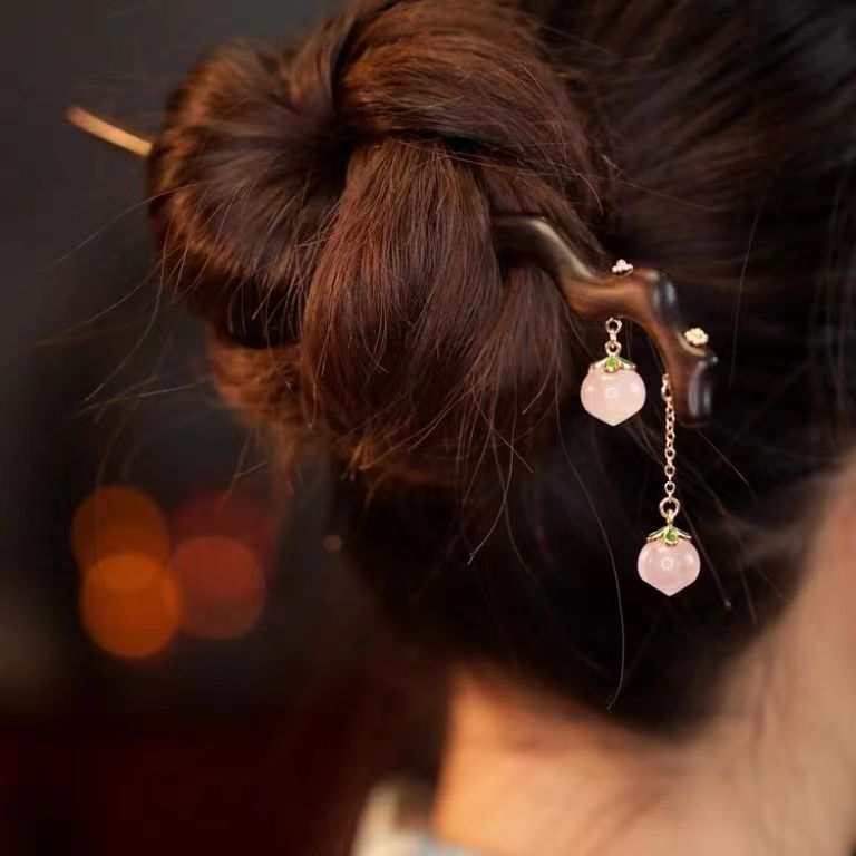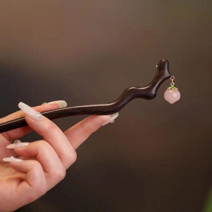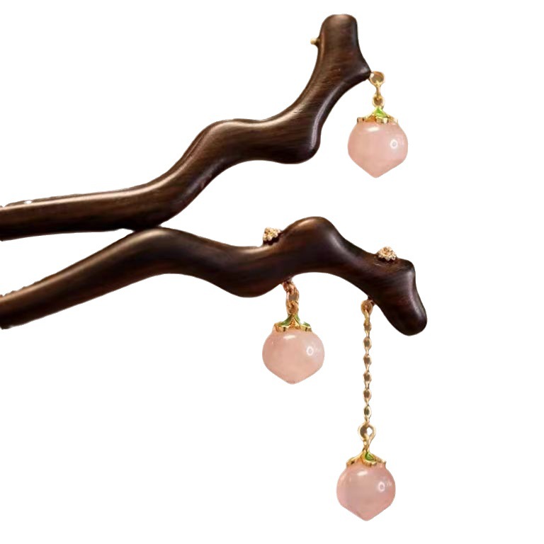 一颗水蜜桃 檀木发簪一支