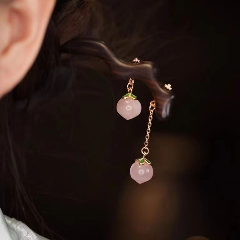 中式发簪旗袍盘头发饰 步摇粉晶桃子国风簪子女日常汉服配饰古风
