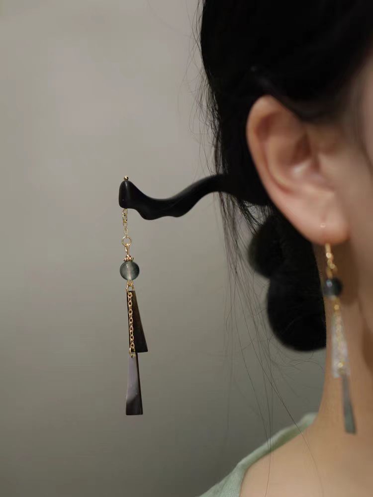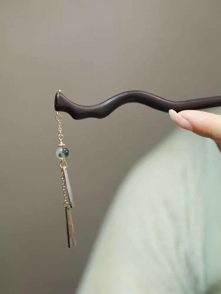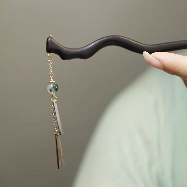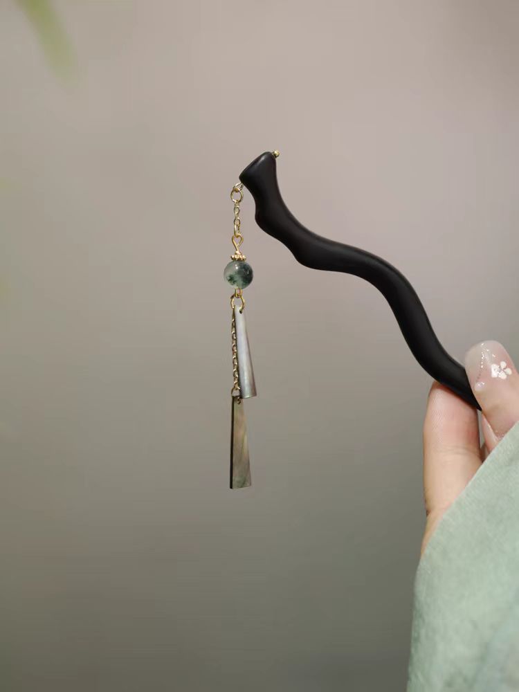 清冷感~ 黑色新中式黑色贝壳发簪檀木木质盘发发饰高级感头饰小众