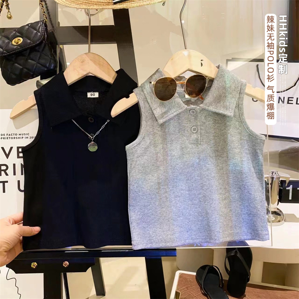 新品女童纯色Polo领高弹无袖洋气百搭打底背心2025夏装中小童上衣