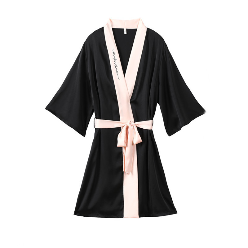 春夏秋季性感诱惑居家丝绸睡袍女短袖薄款冰丝睡衣休闲大码家居服