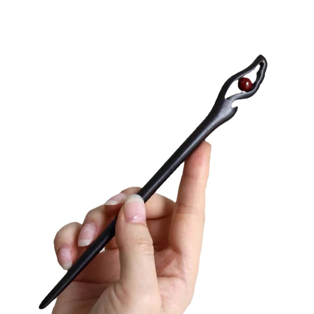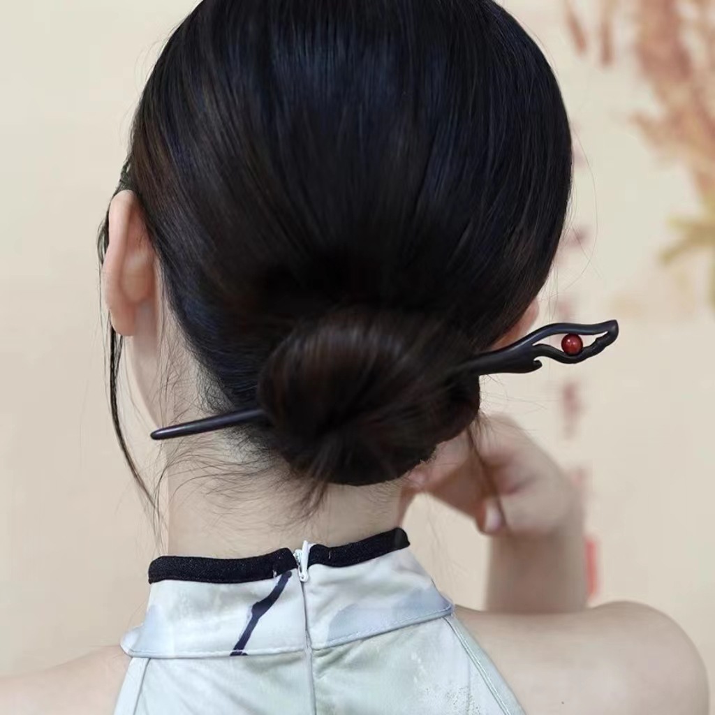 原创【红尘】朱砂石黑檀木发簪新中式盘发钗子旗袍汉服日常百搭女