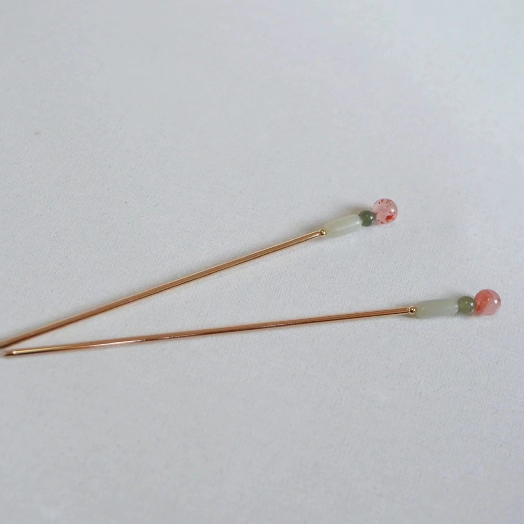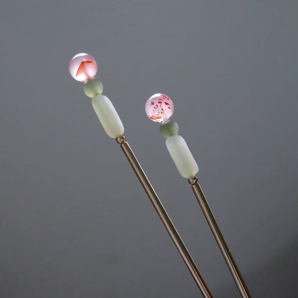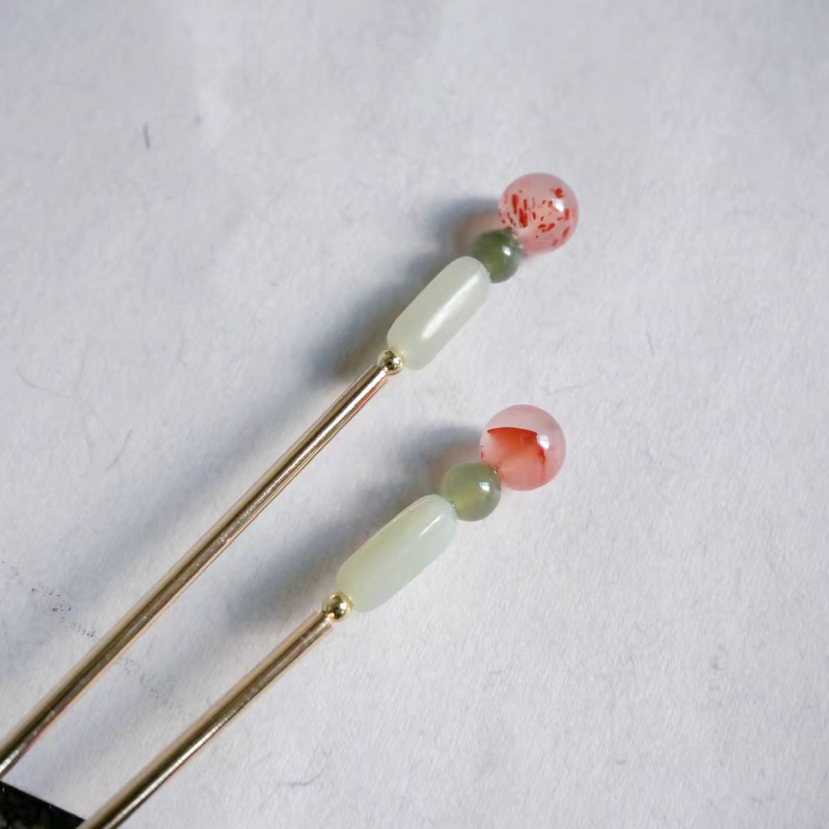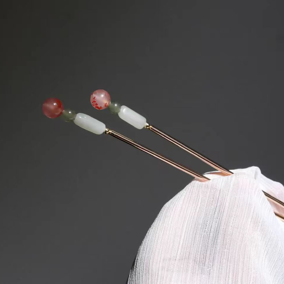 芙蓉泣露。原创天然玉石南红发簪子盘发点缀复古风明制神棍头饰女