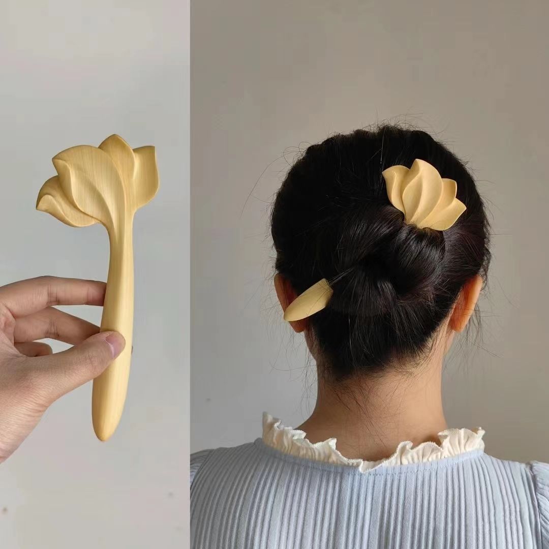 天然桃木鱼尾发簪新中式高级感气质百搭日常簪子女古风汉服头饰