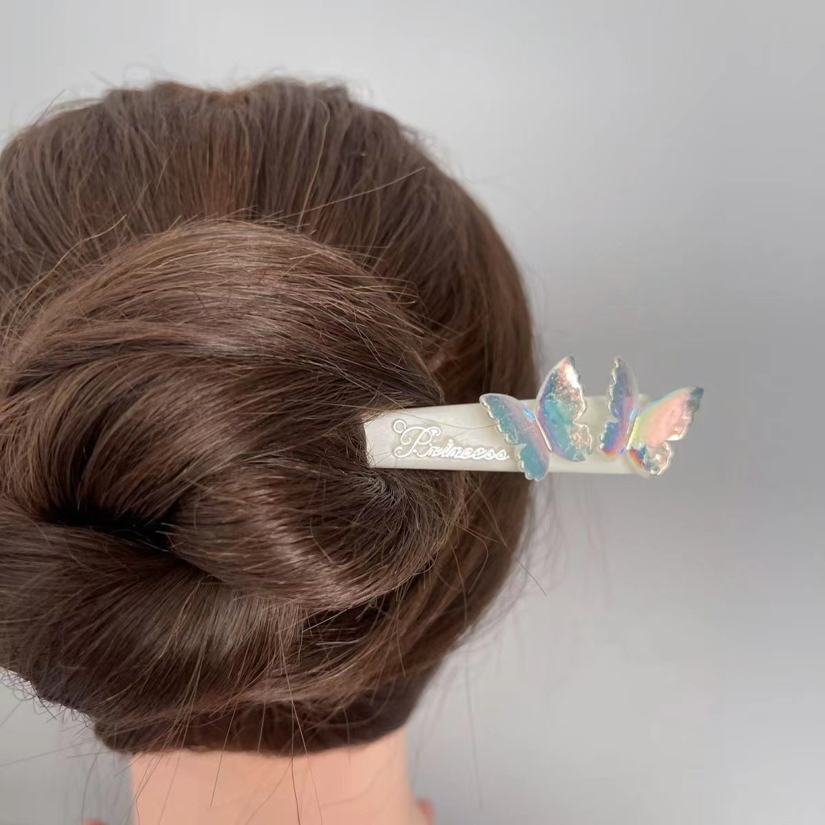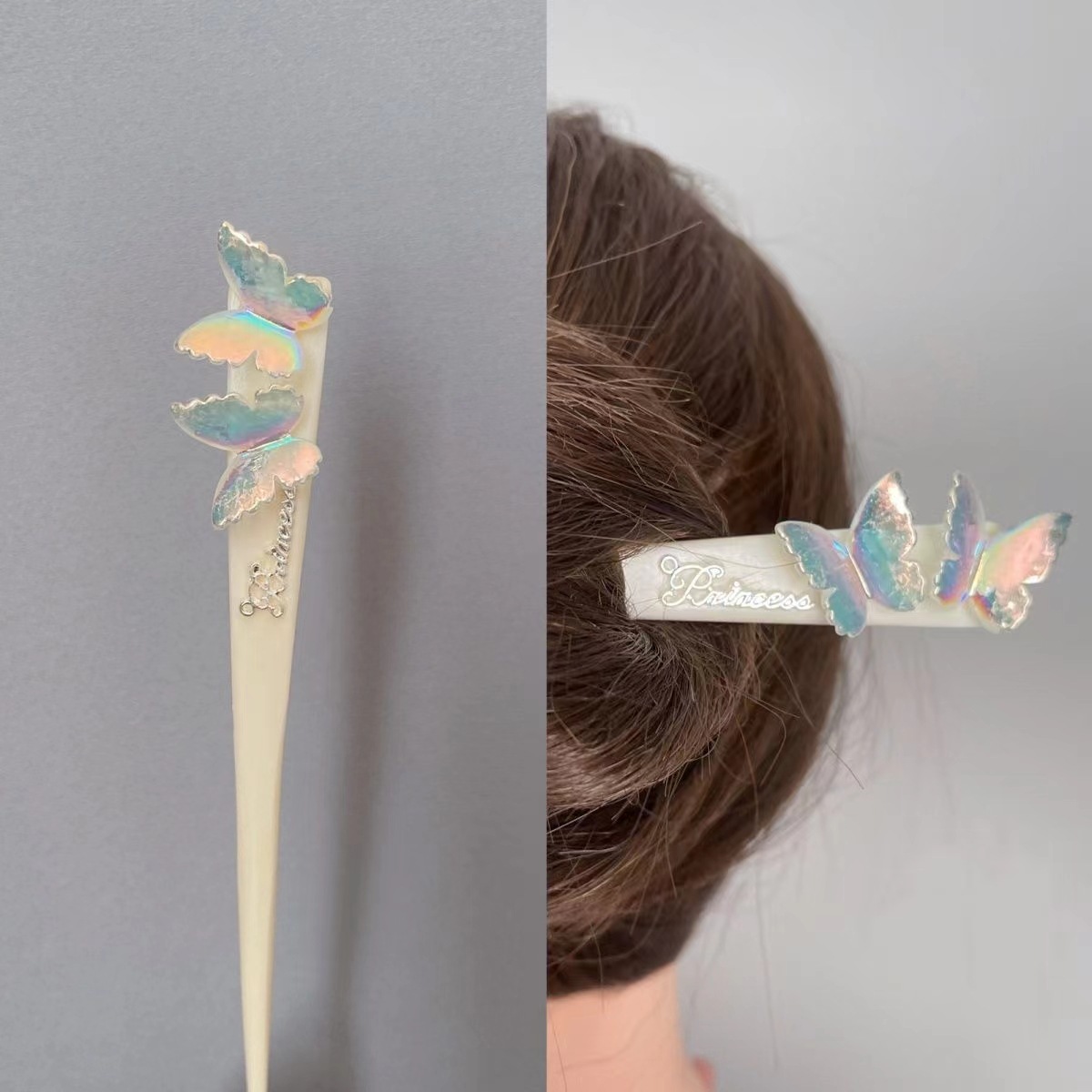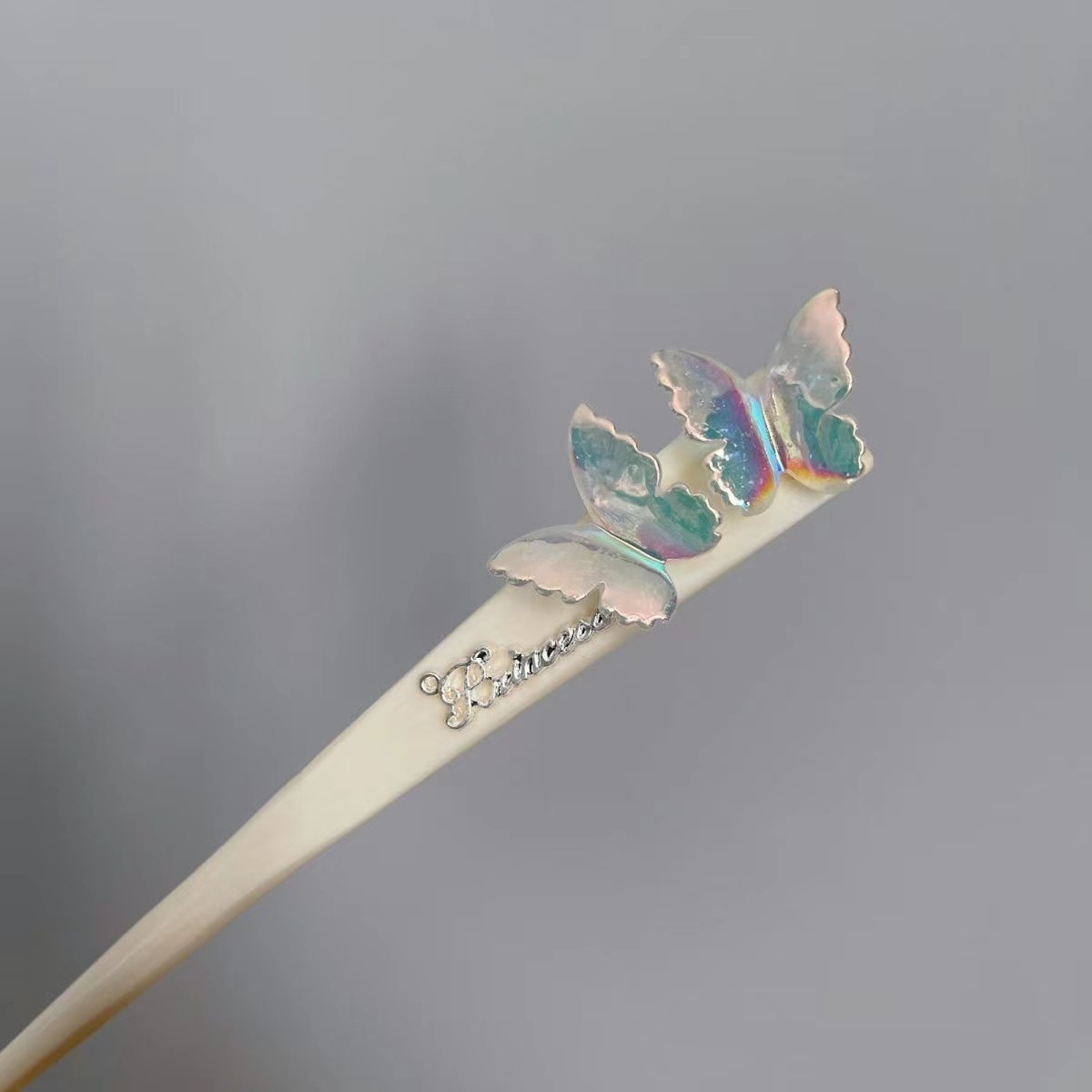 原创炫彩镭射闪闪发光蝴蝶仙气十足头饰发簪子盘发新中式中国风