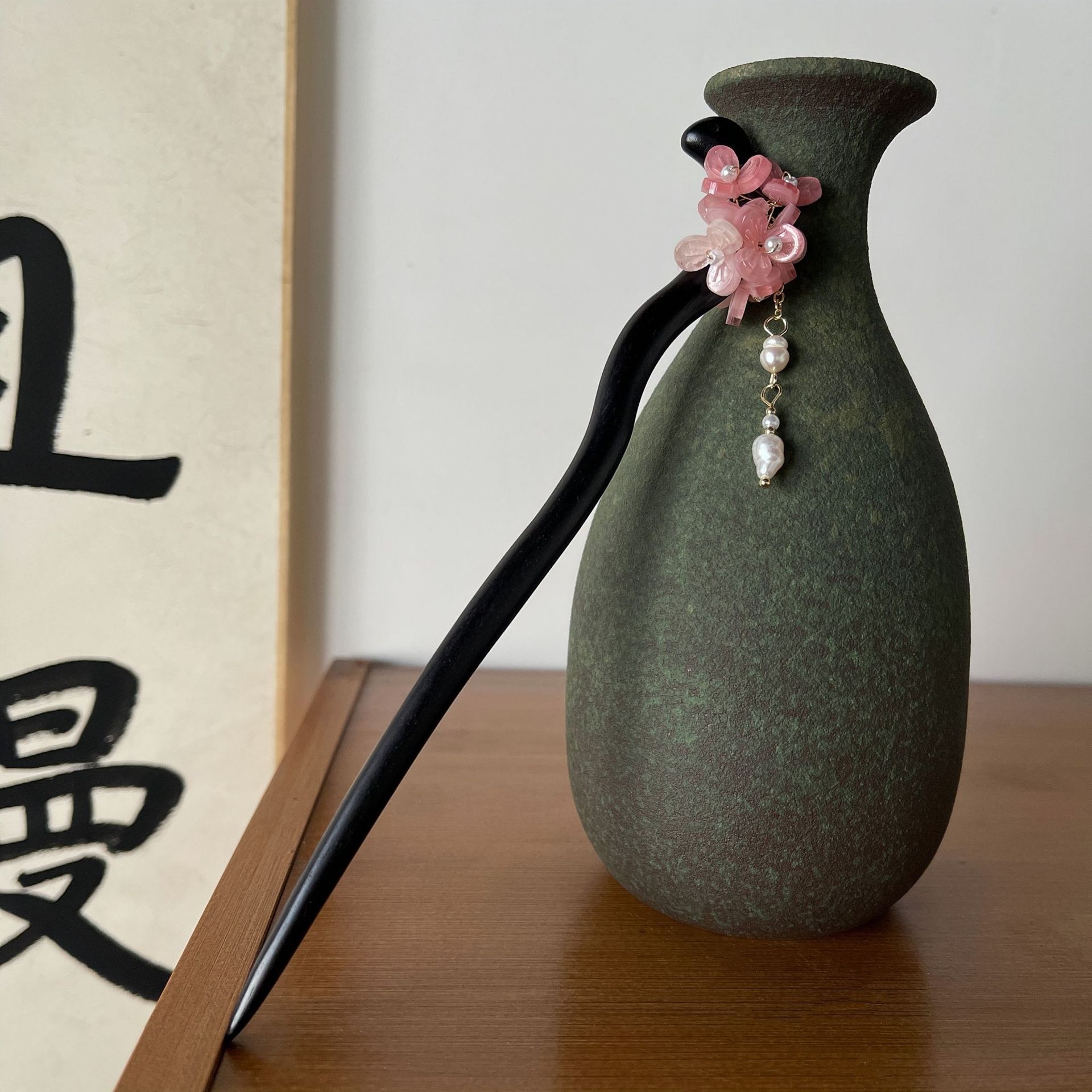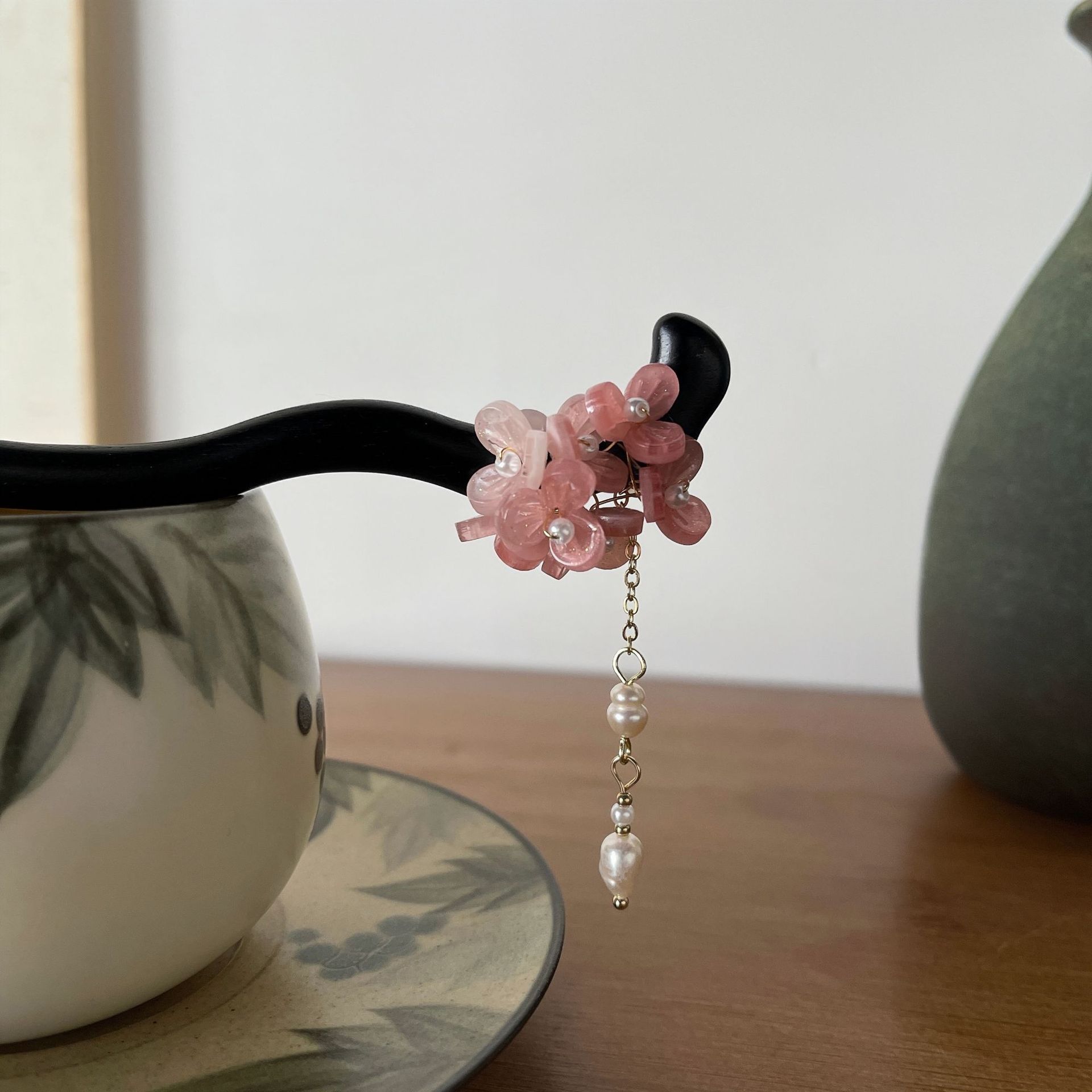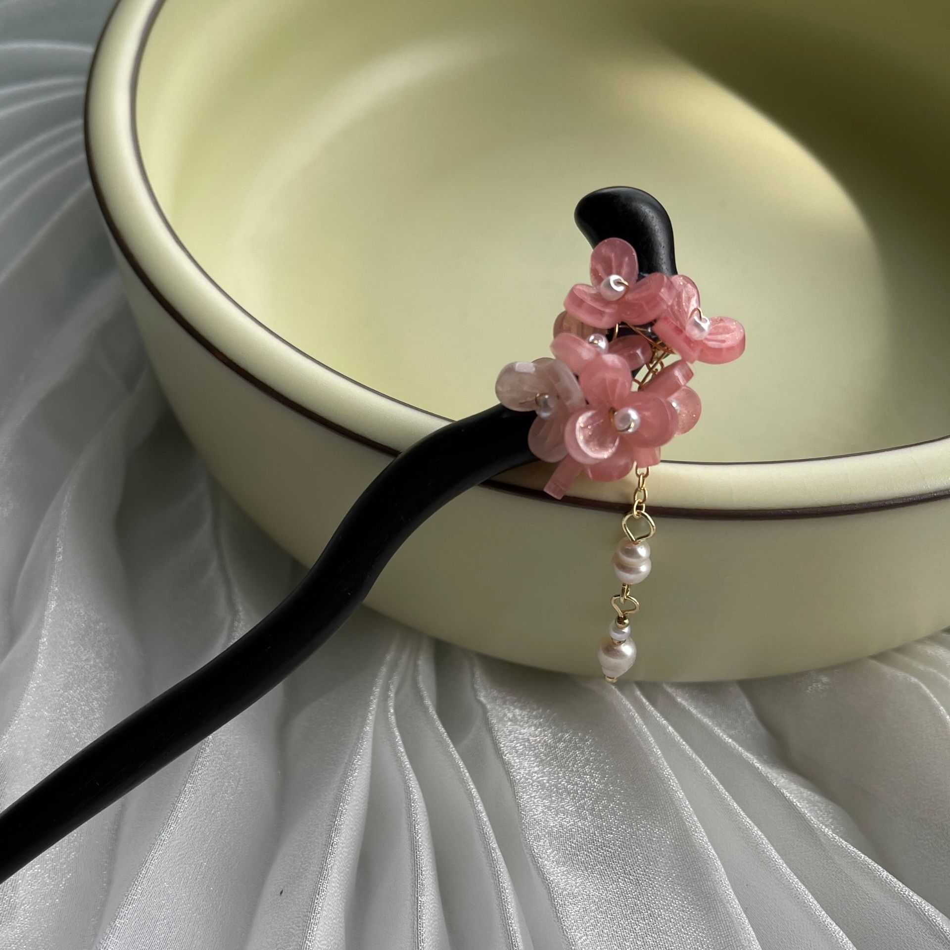 粉花簇 发簪一支(天然珍珠)