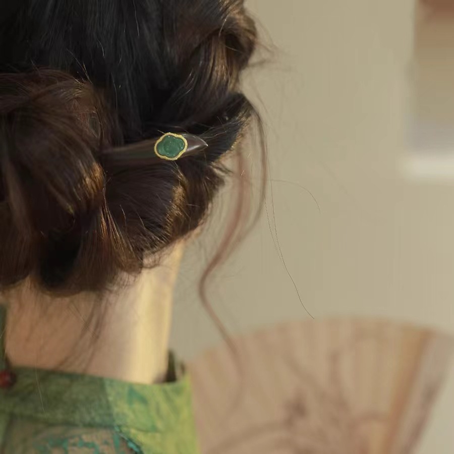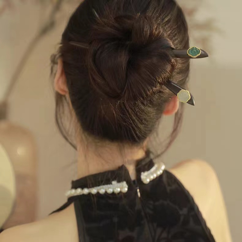 古风简约新中式黑檀木发簪高级日常盘发簪子女马面裙旗袍汉服头饰