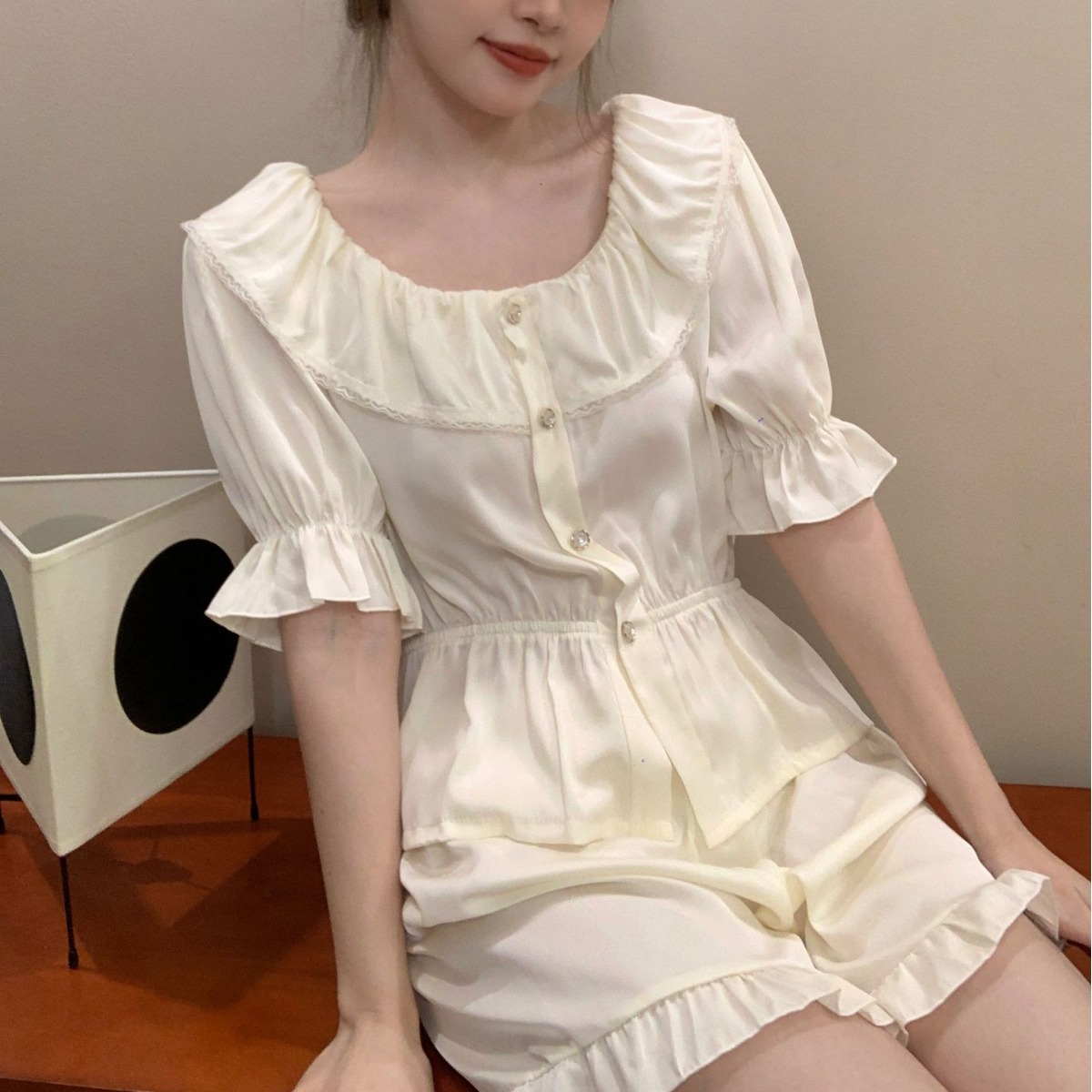 夏季新款短袖短裤睡衣女冰丝甜美少女套装家居服法式仿真丝睡衣