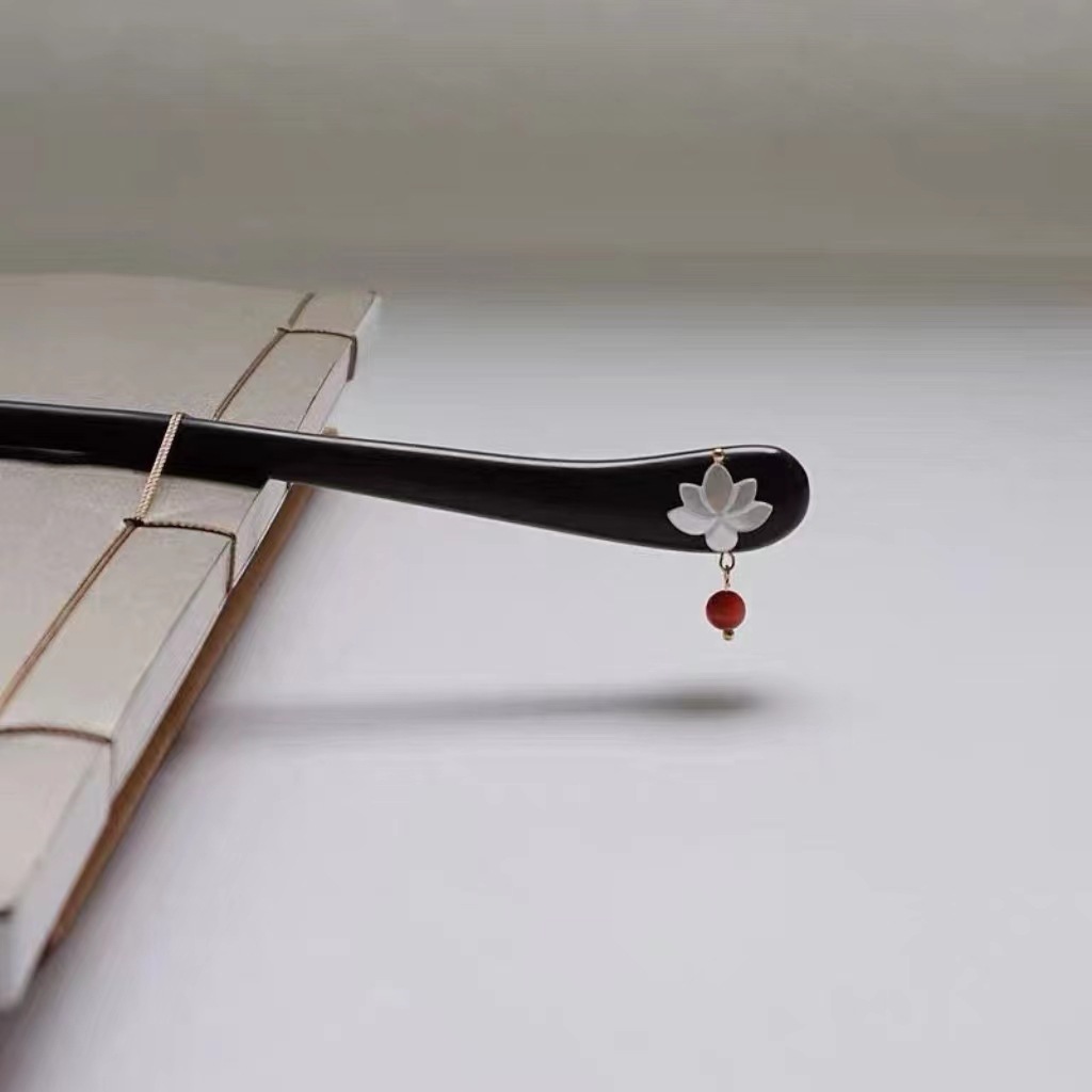 莲花红豆 黑檀木发簪一支