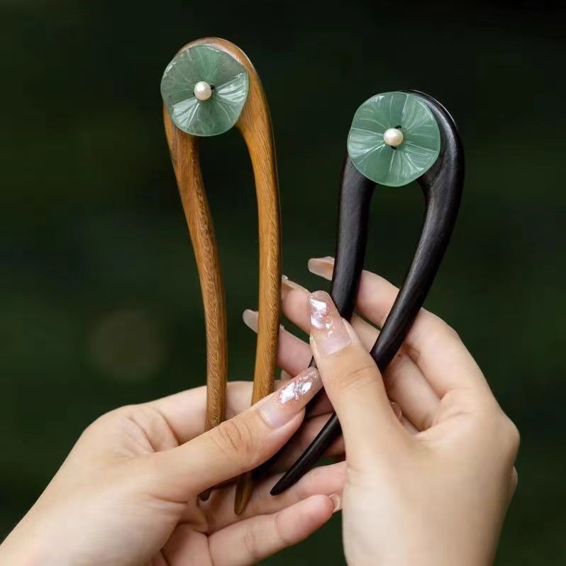 黑檀木u型双簪子高级感发钗子复古风简约款发簪日常挽发头饰发饰