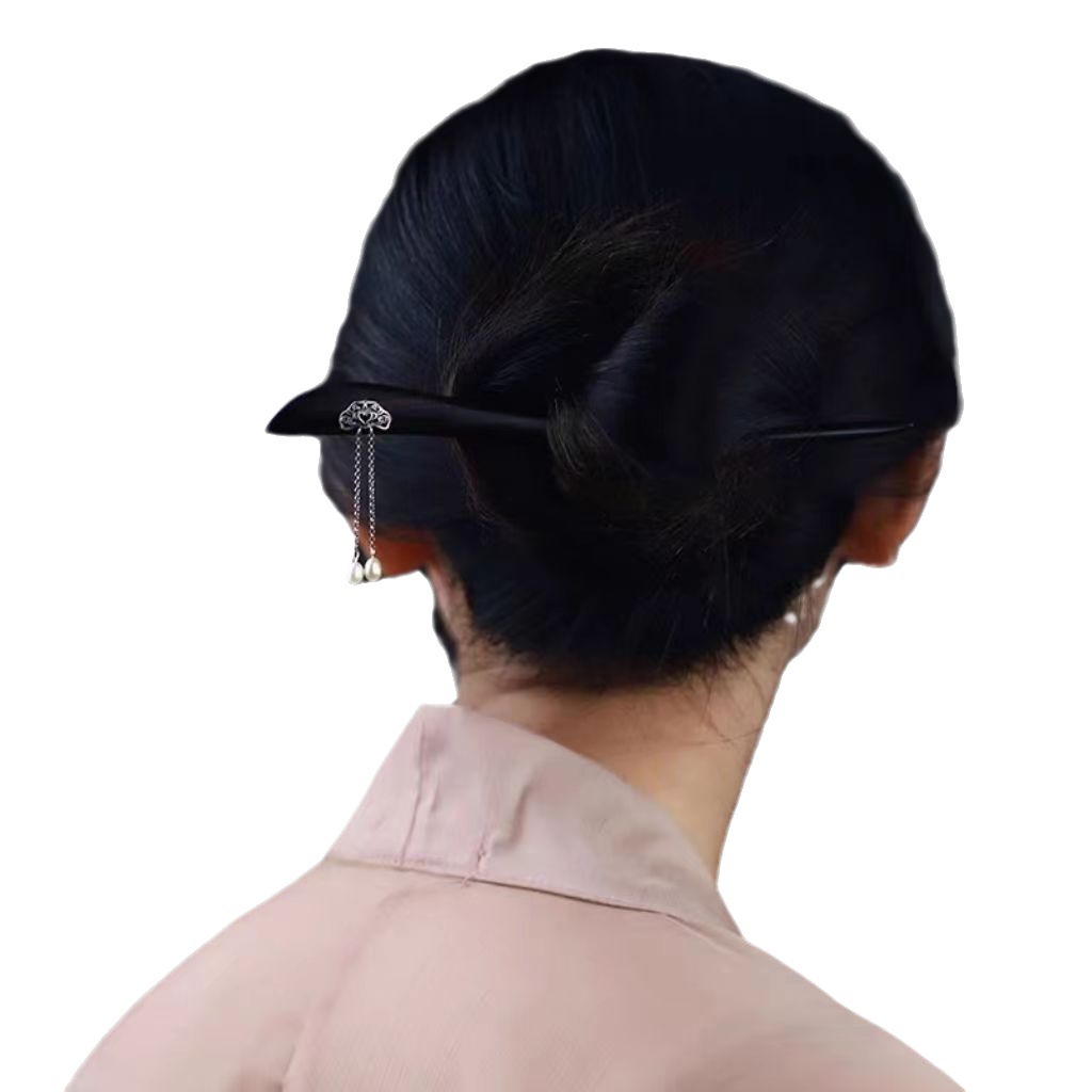 黑檀木珍珠步摇发簪古风新中式汉服流苏簪子简约日常高级感盘发钗