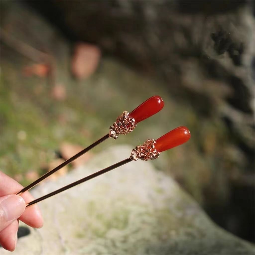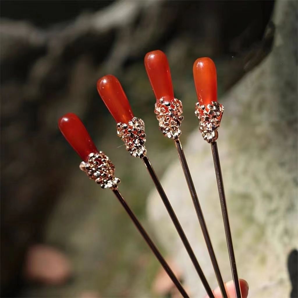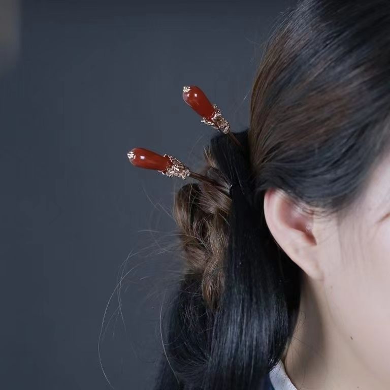 发簪古风檀木盘发挽发猫咪头饰简约日常款国风小众汉服旗袍
