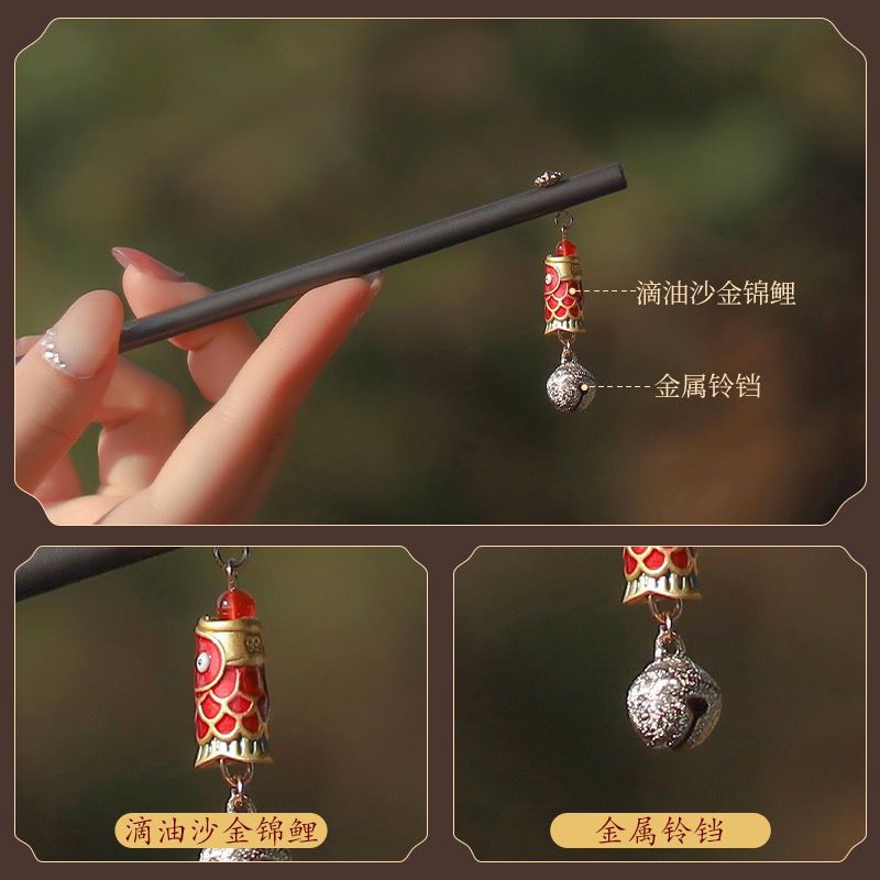 锦鲤新年发簪古风女木质步摇流苏发钗汉服盘发新中式簪子简约现代