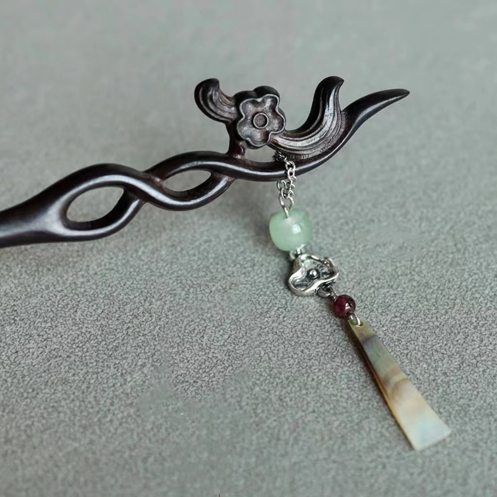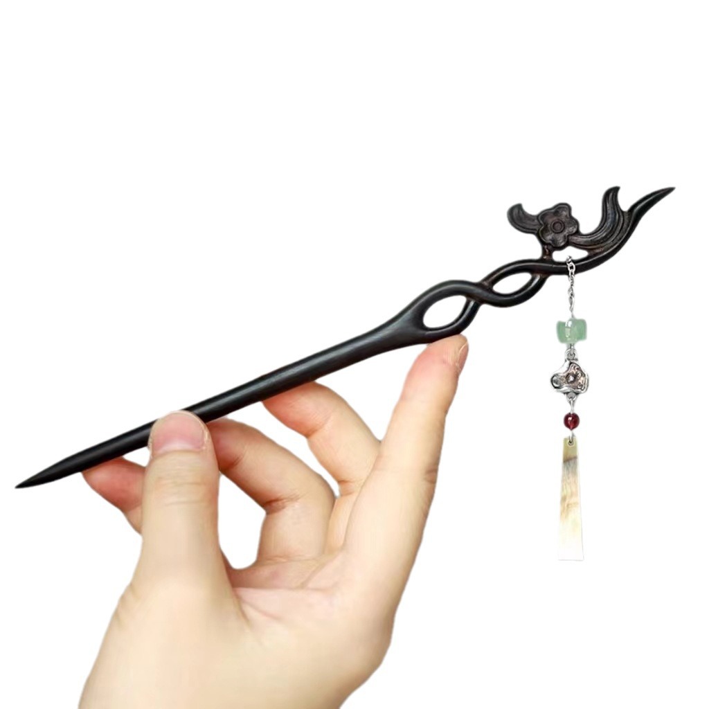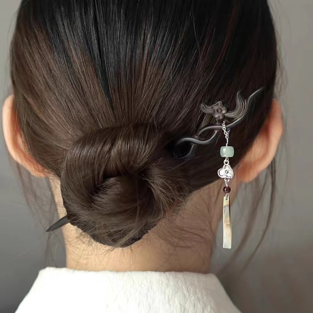 【弄梅】新中式紫光黑檀木发簪简约日常盘发流苏发饰汉服旗袍木簪