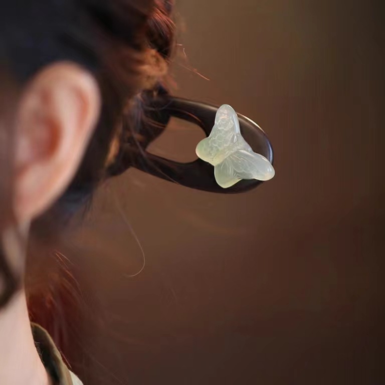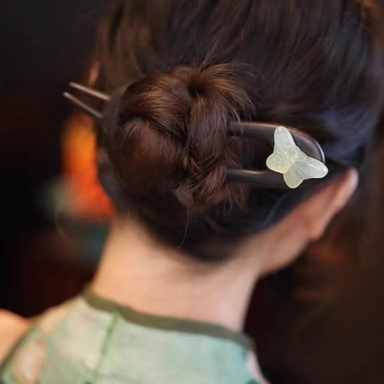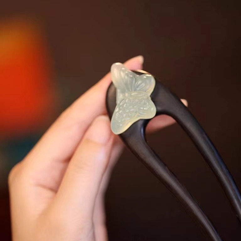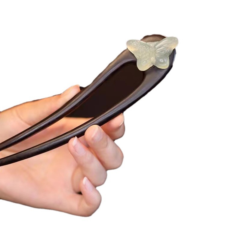 岫玉发簪女高级感七夕送女友礼物日常檀木簪子盘发旗袍头饰丸子头