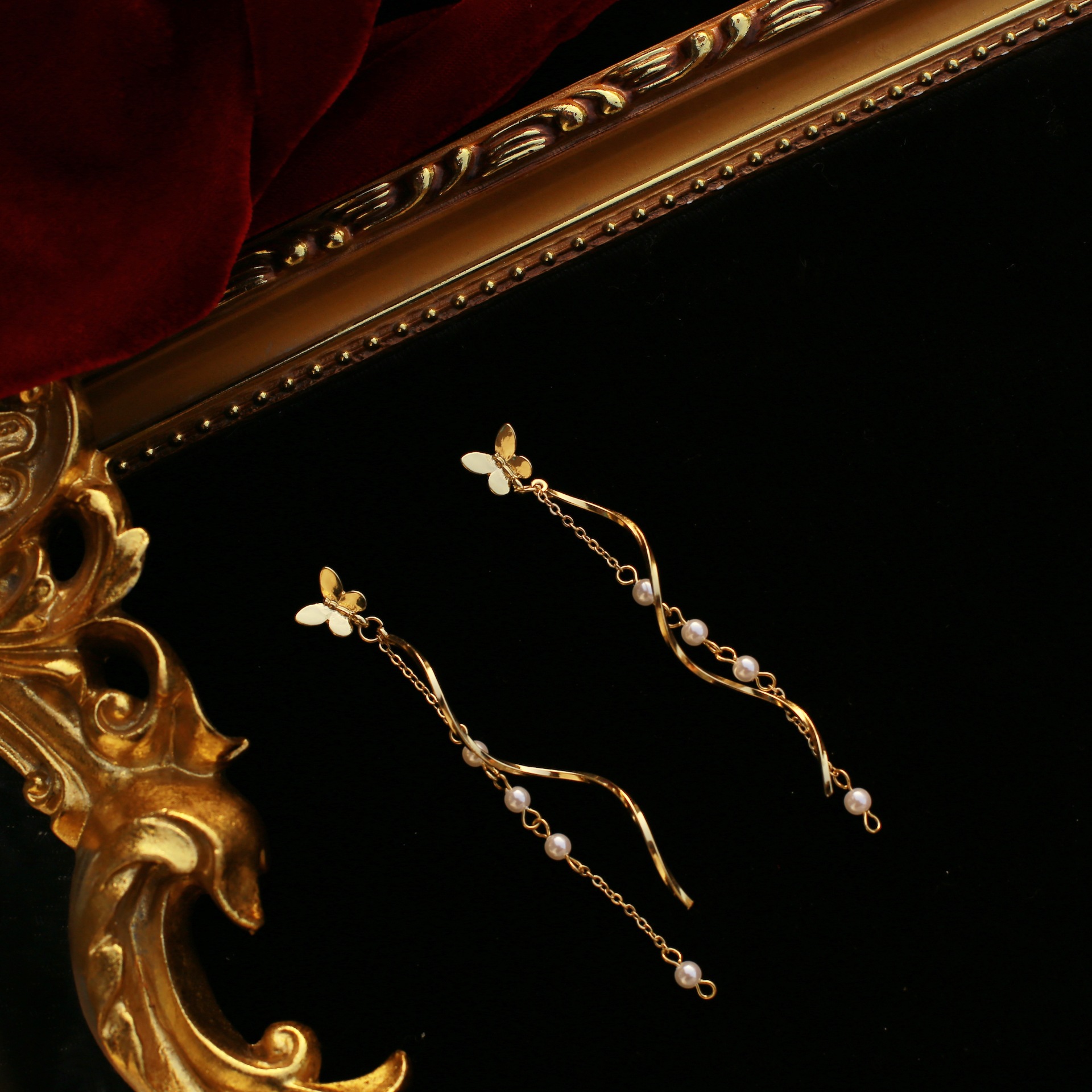 S925银针蝴蝶流苏耳环长款气质耳坠百搭时尚耳钉耳饰
