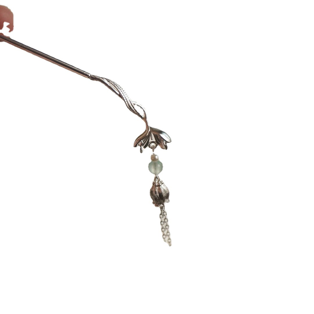 手工原创清新素雅汉服旗袍银色盘发簪子钗铃兰花苞流苏步摇新中式