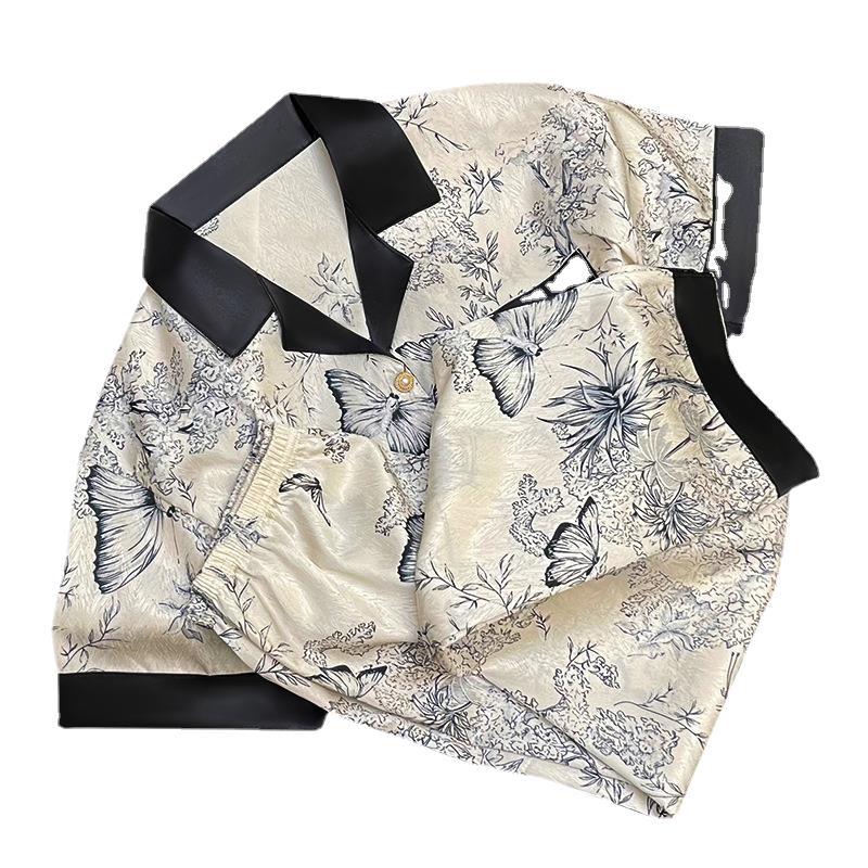 中国风水墨画睡衣女春秋夏季新款短袖长裤高级感丝绸家居服A20