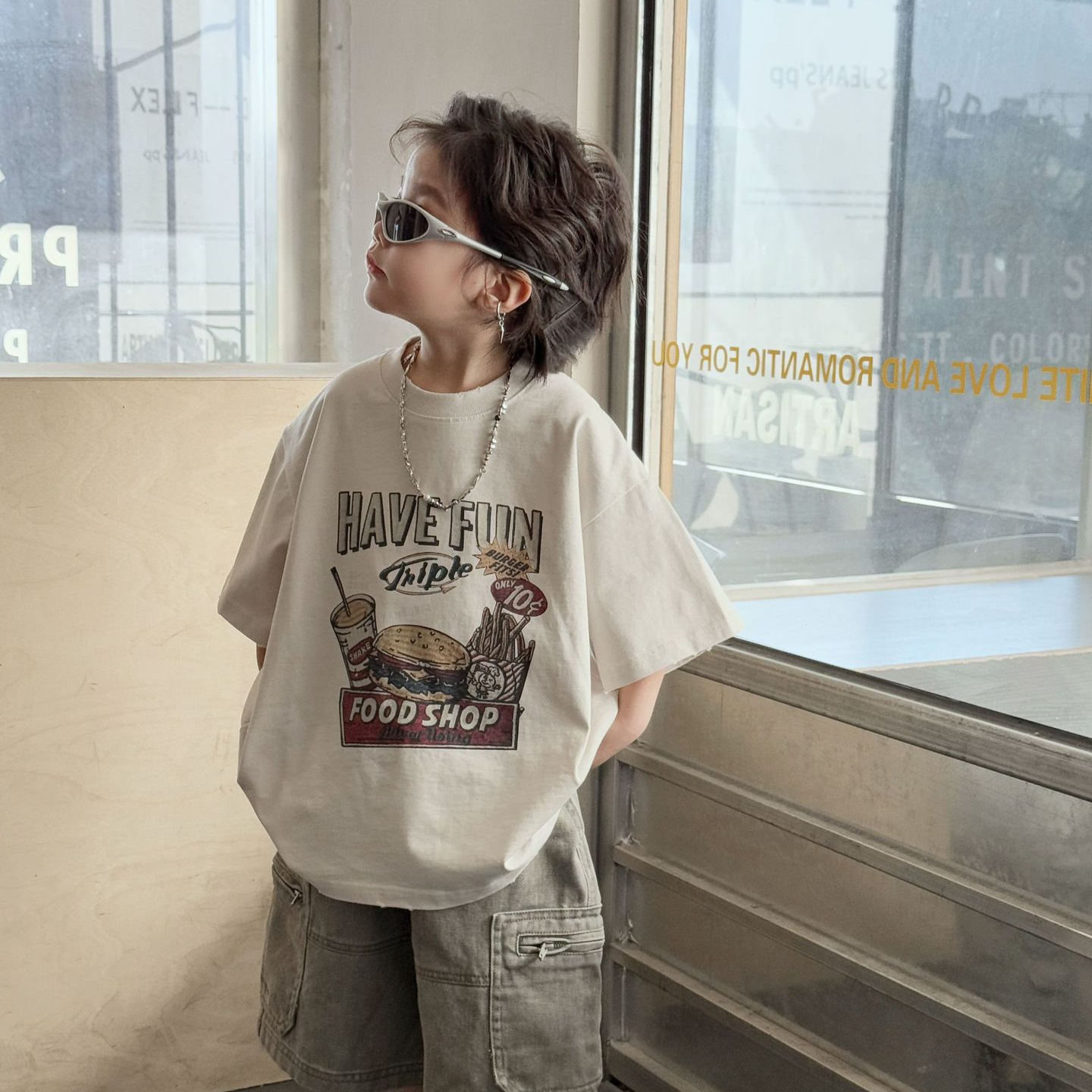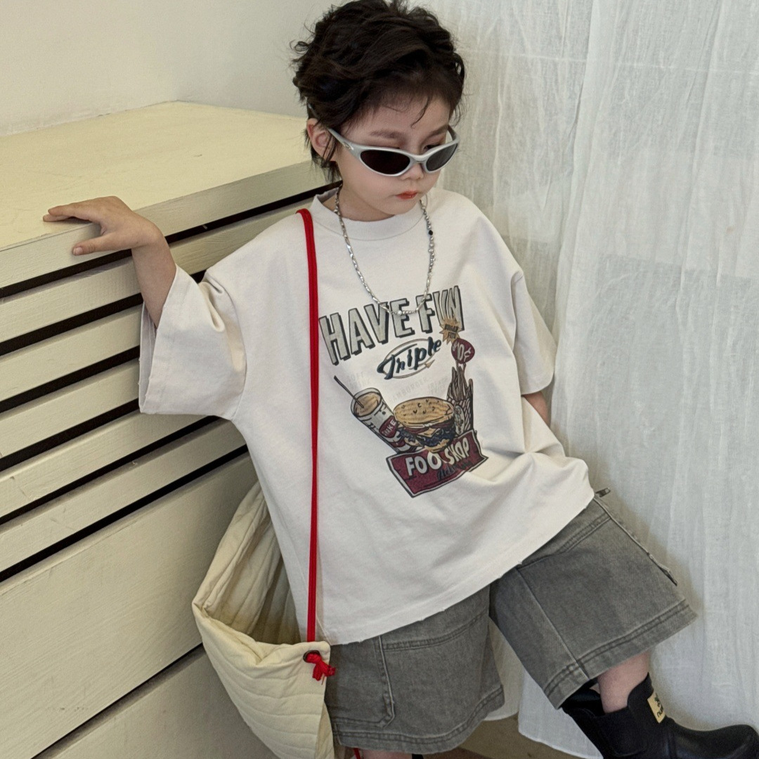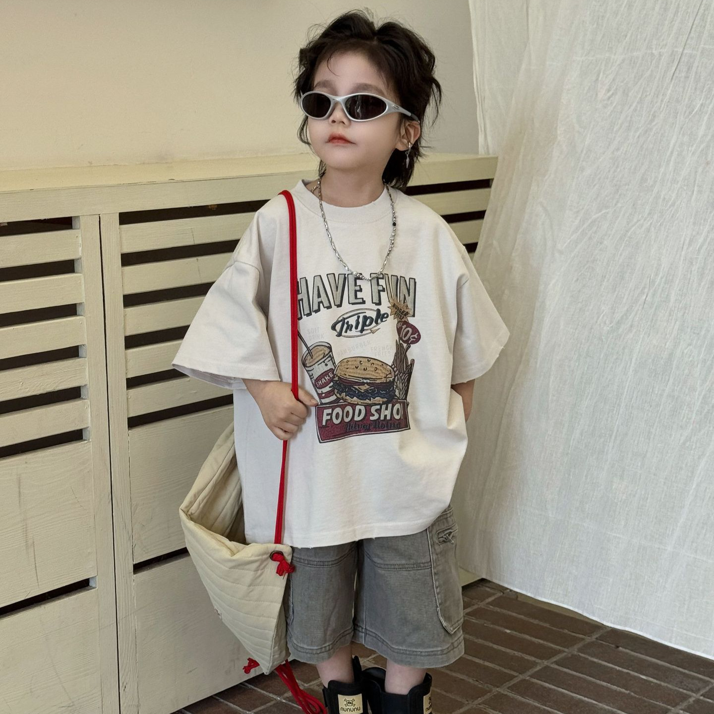 童装儿童T恤2025年新款夏季短袖上衣圆领印花男童潮酷洋气半袖