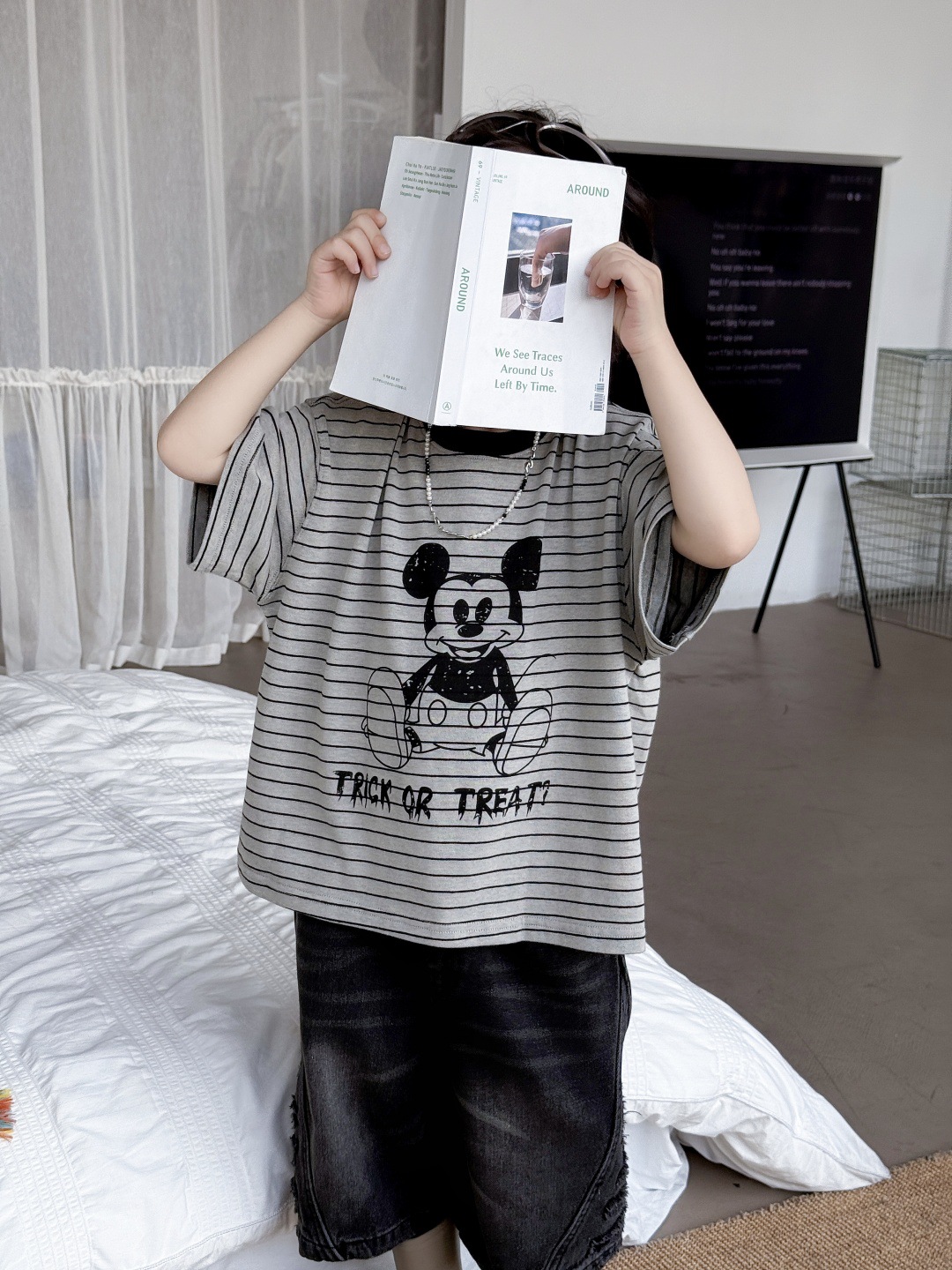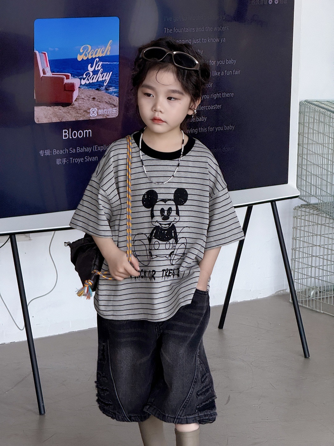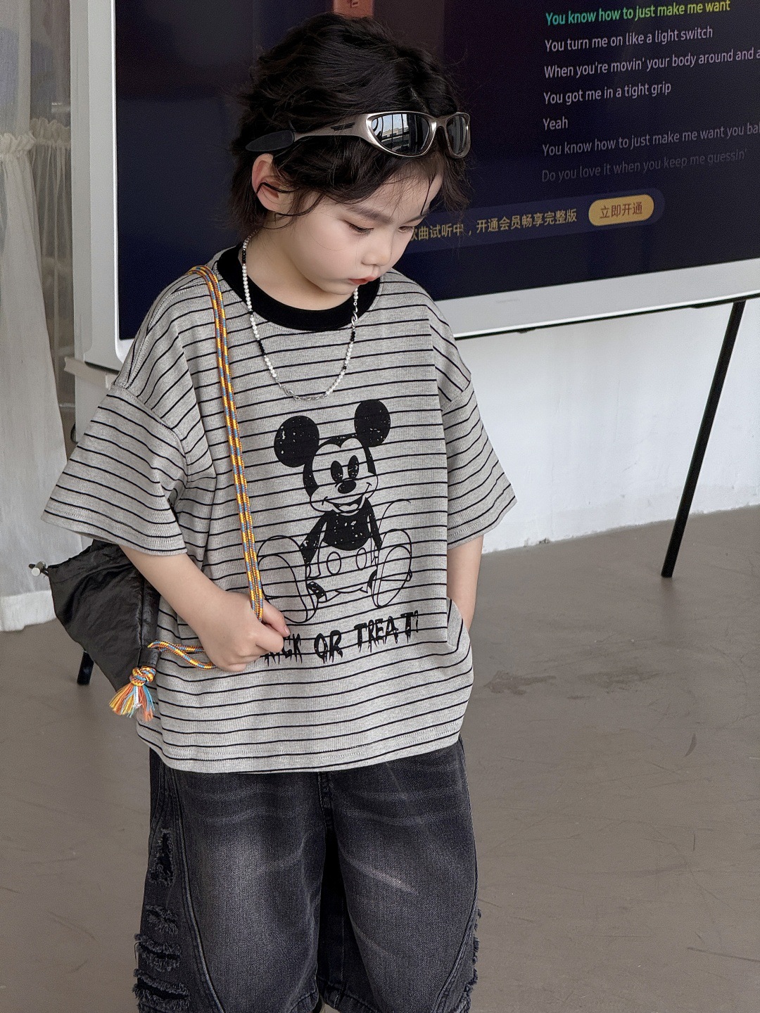 2025儿童T恤卡通条纹上衣米奇可爱上衣男童女童男孩男宝宝短袖潮