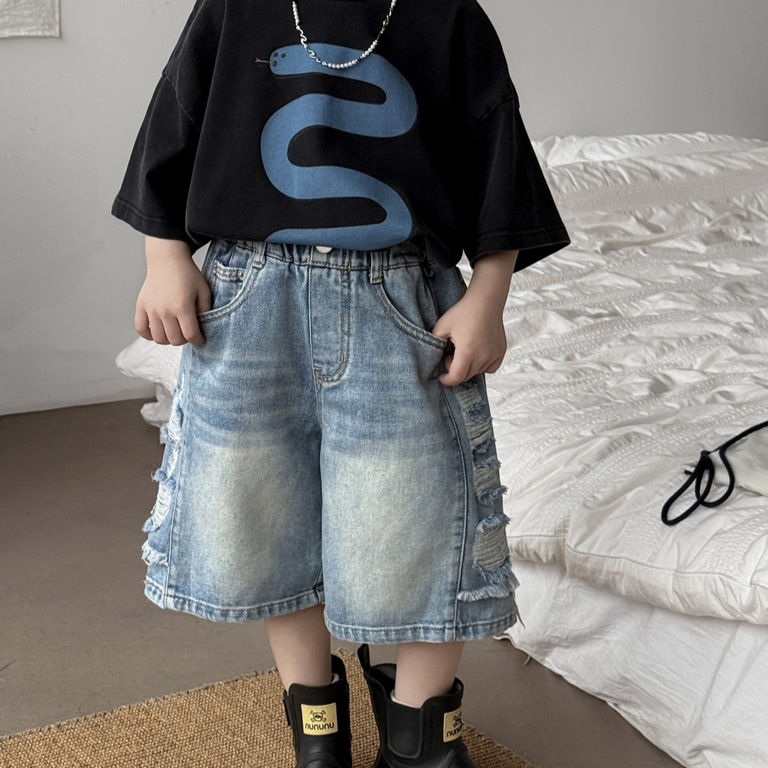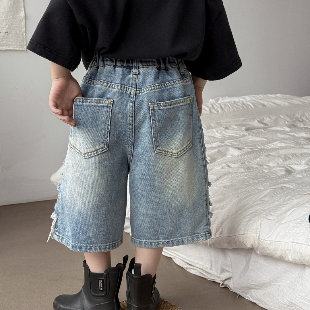 2025美式复古破洞牛仔短裤男孩夏季薄款宽松磨破水洗乞丐五分中裤