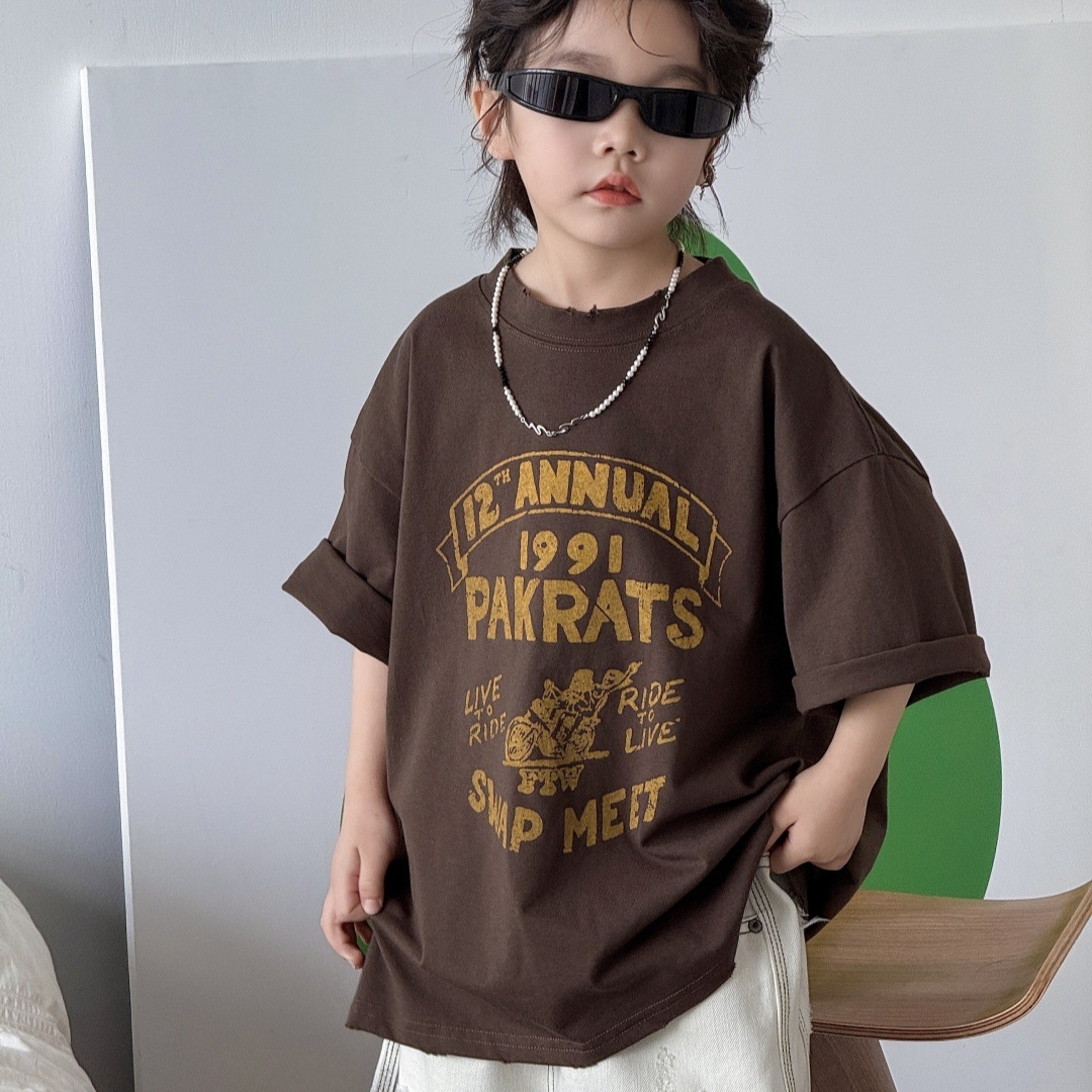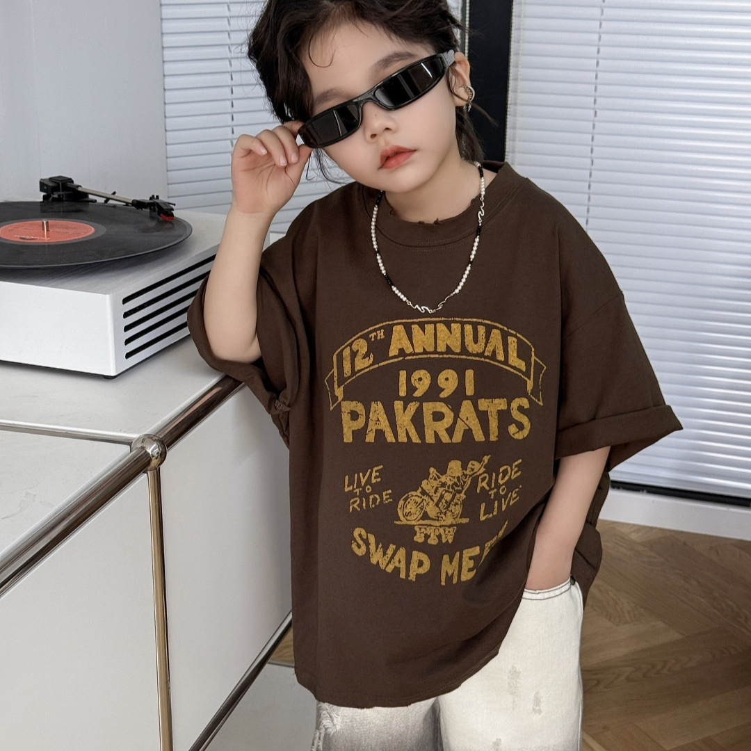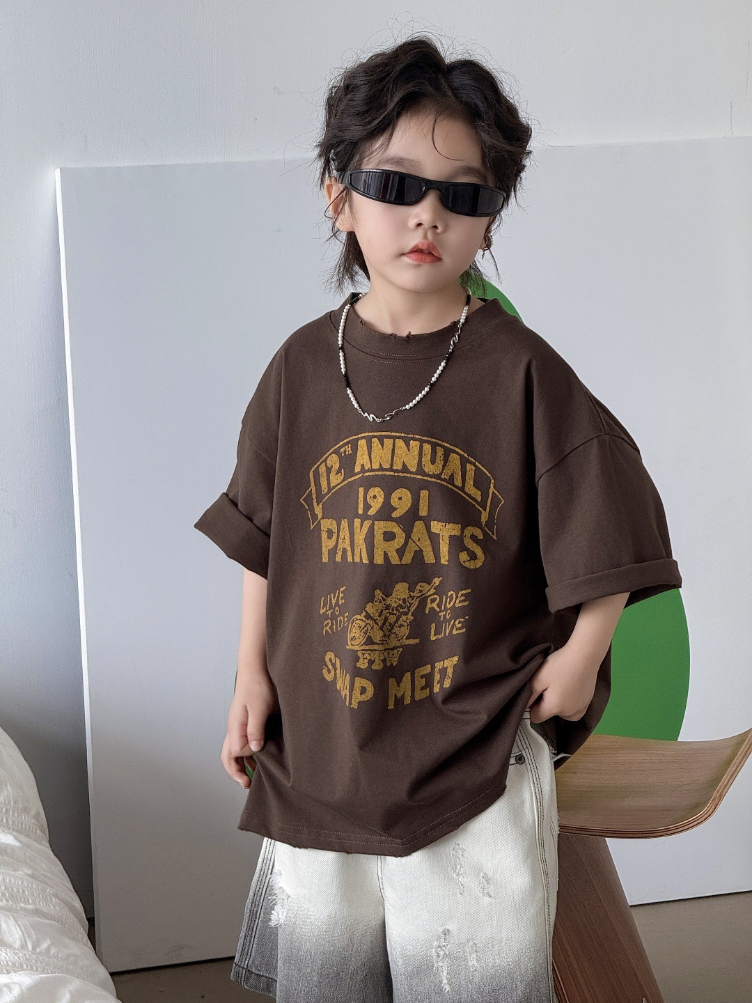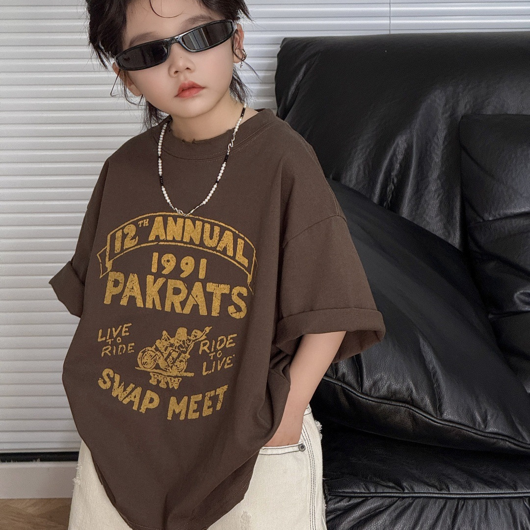 童装儿童T恤男童女童印花上衣美拉德洋气韩版宽松短袖半袖美式潮
