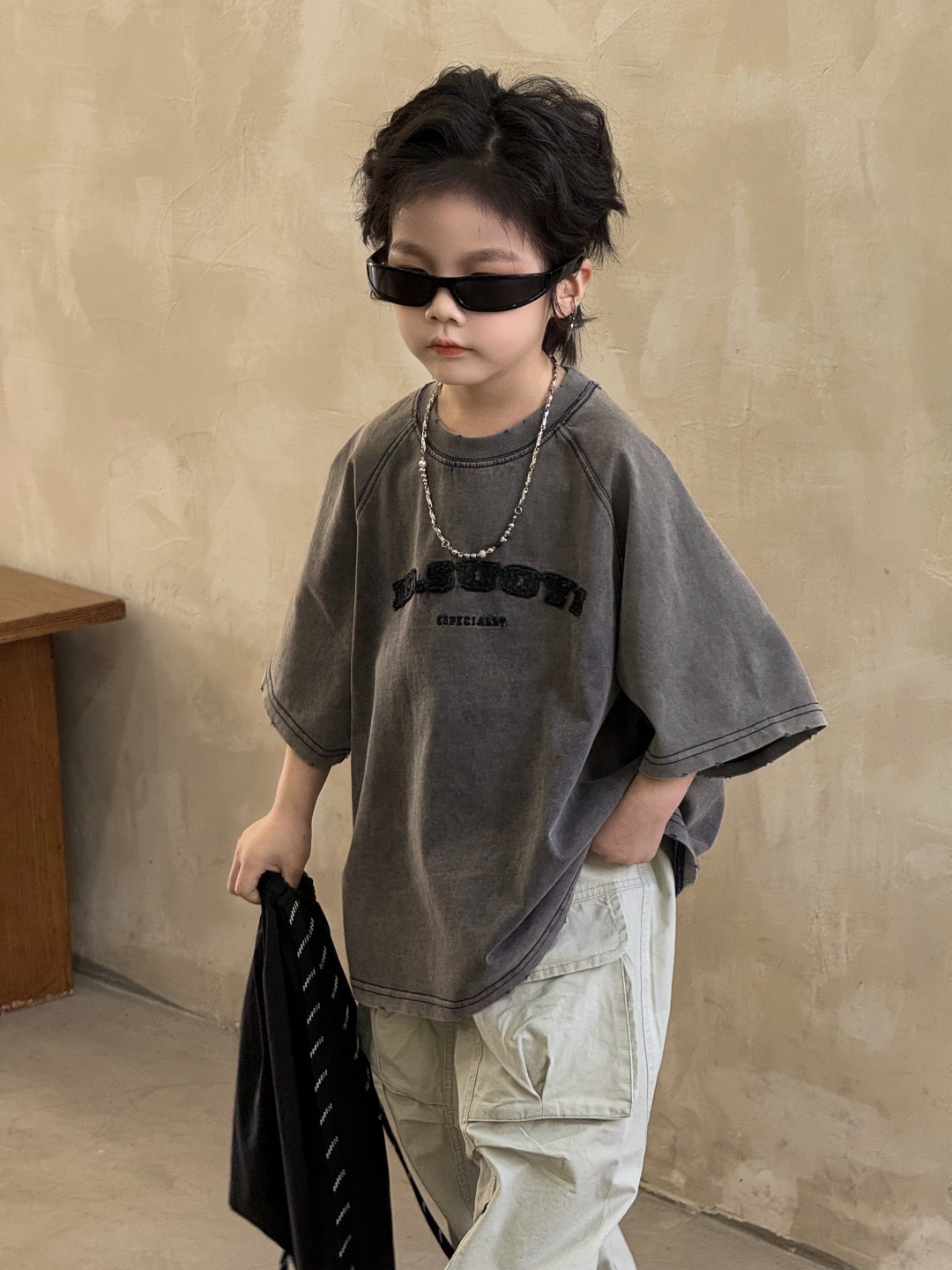 童装儿童T恤炒色男童短袖半袖洗褪重工美式高街洋气刺绣男孩上衣
