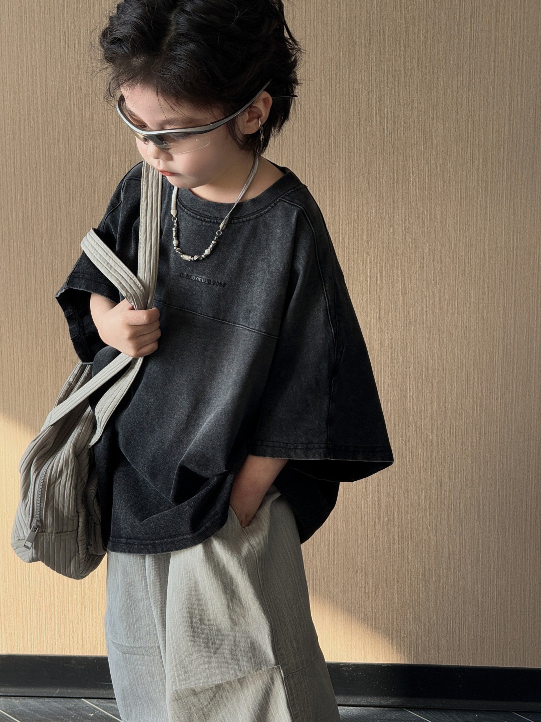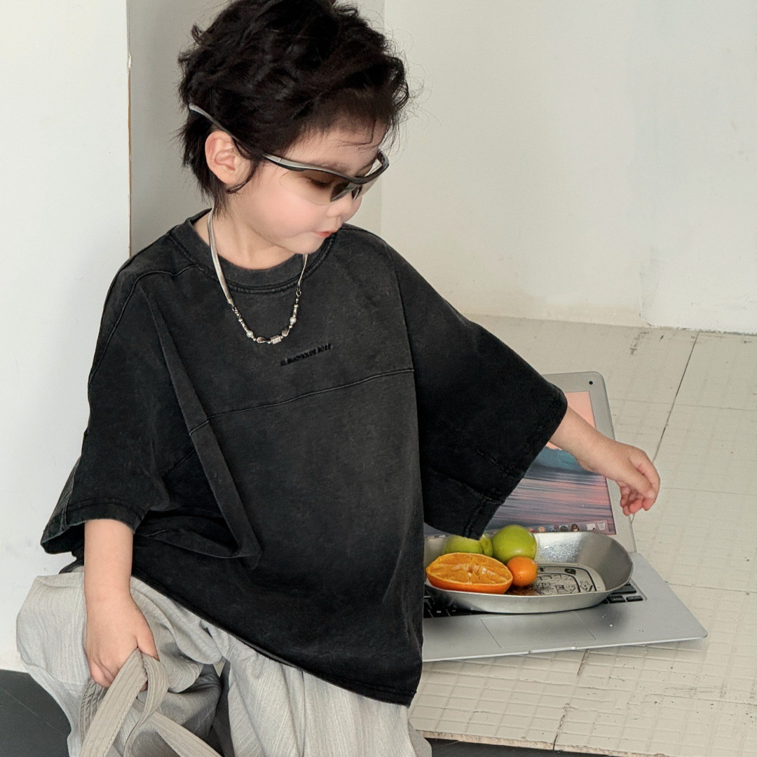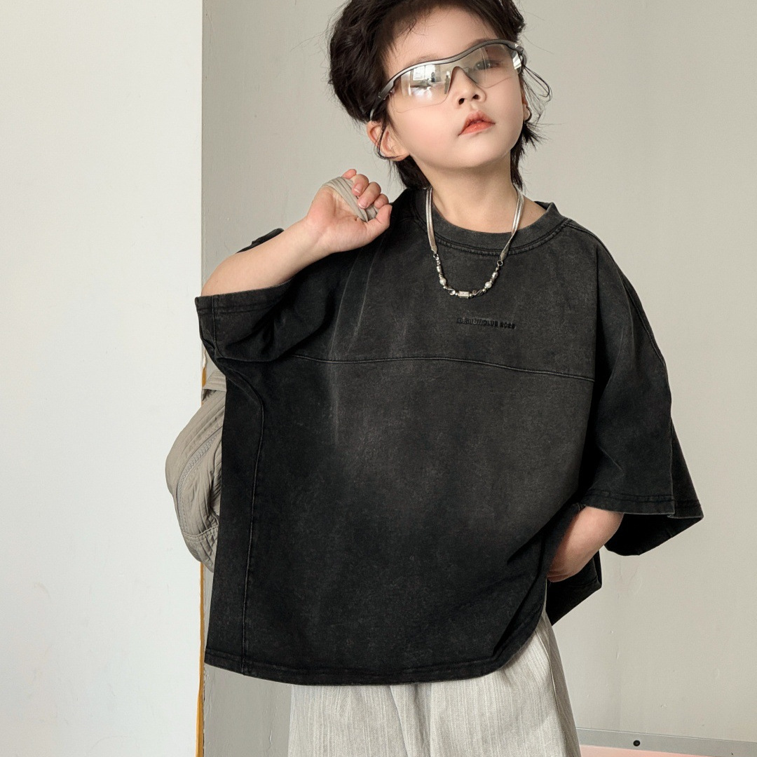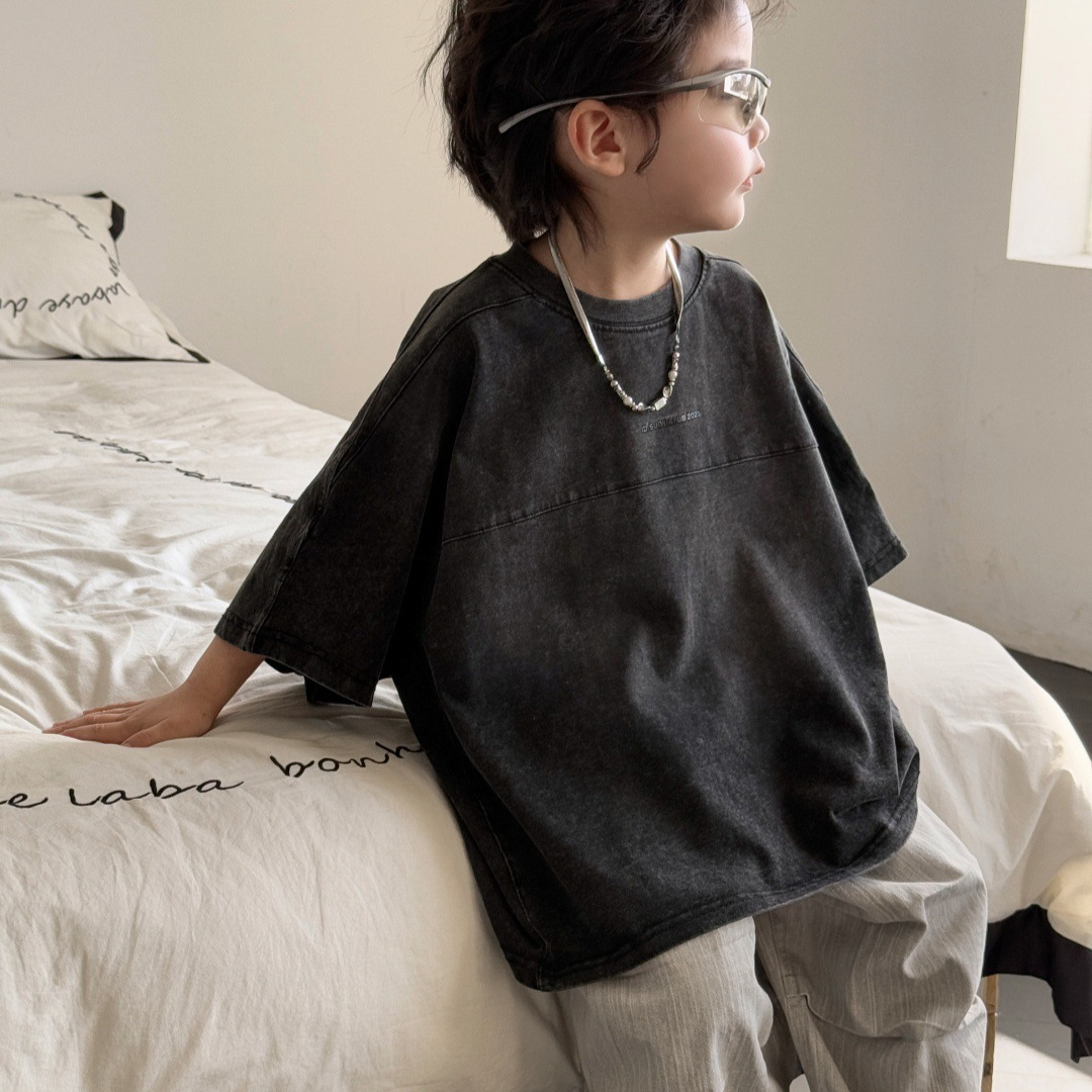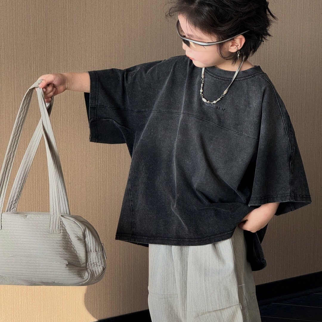 美式水洗男童短袖t恤夏季新款潮流ins宽松圆领休闲印花上衣男童