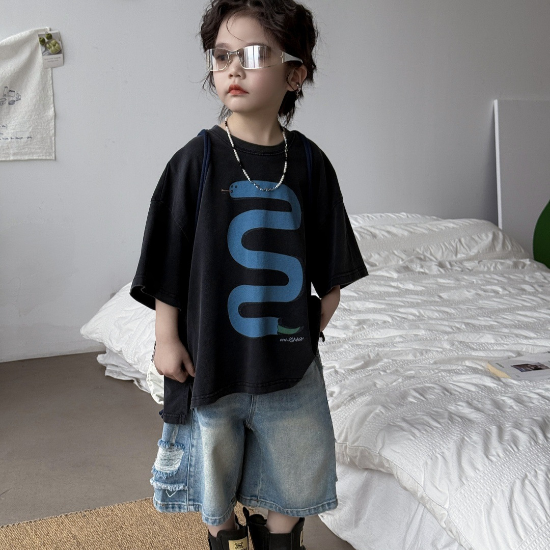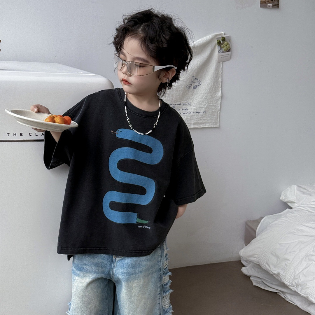童装儿童T恤贪吃蛇儿童炒色潮牌T恤男童男孩复古美式洋气上衣帅气