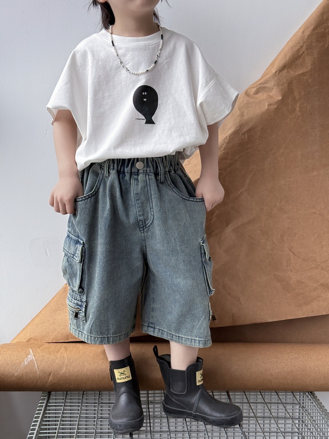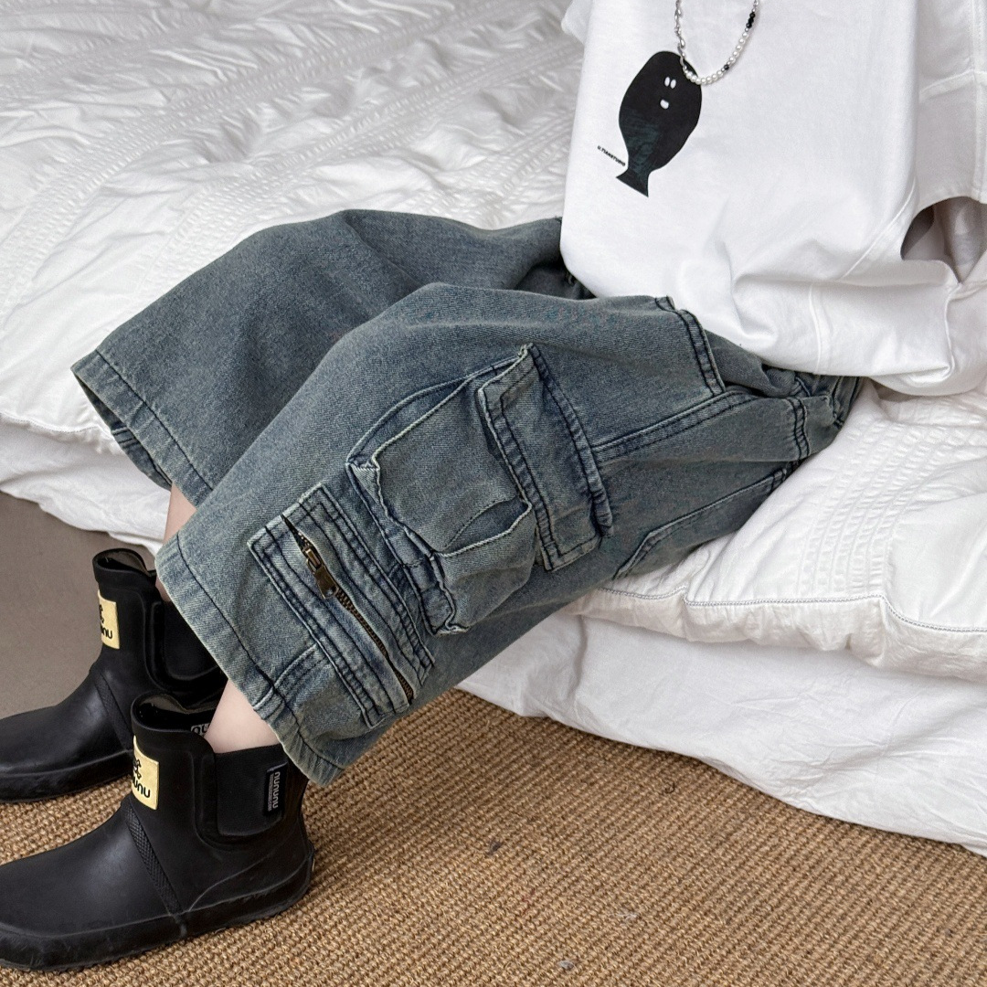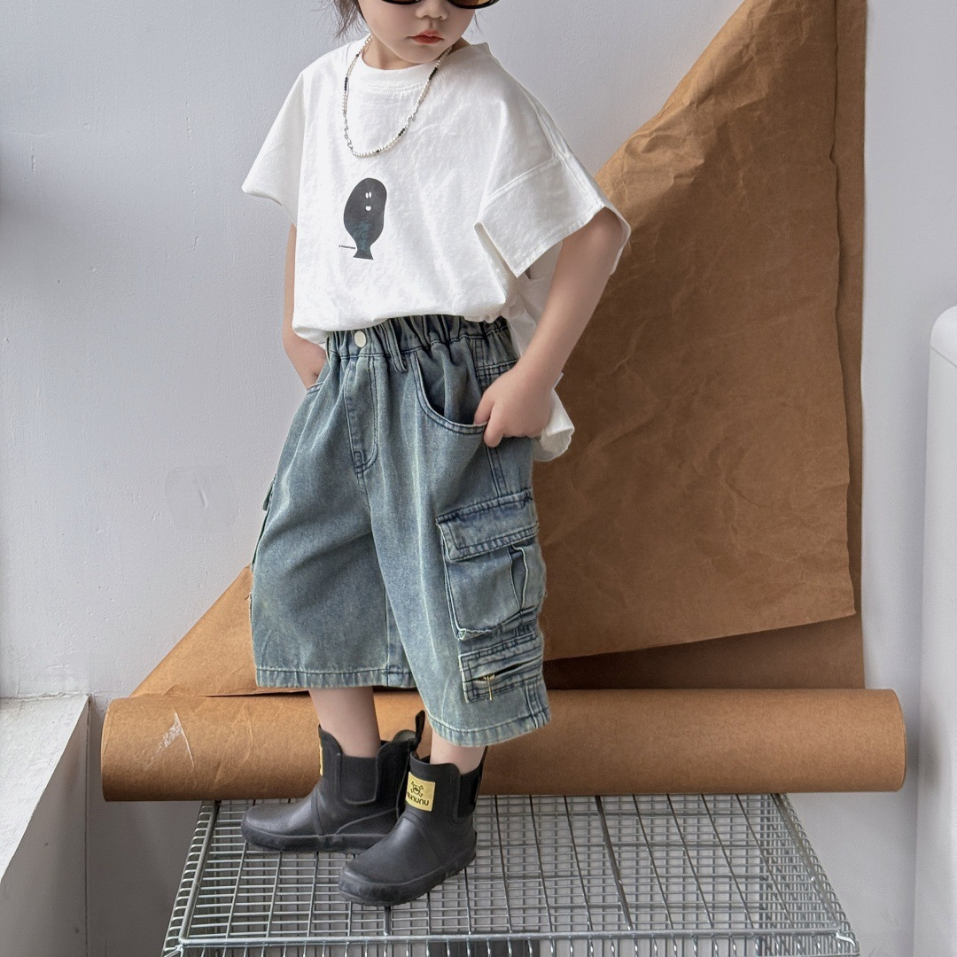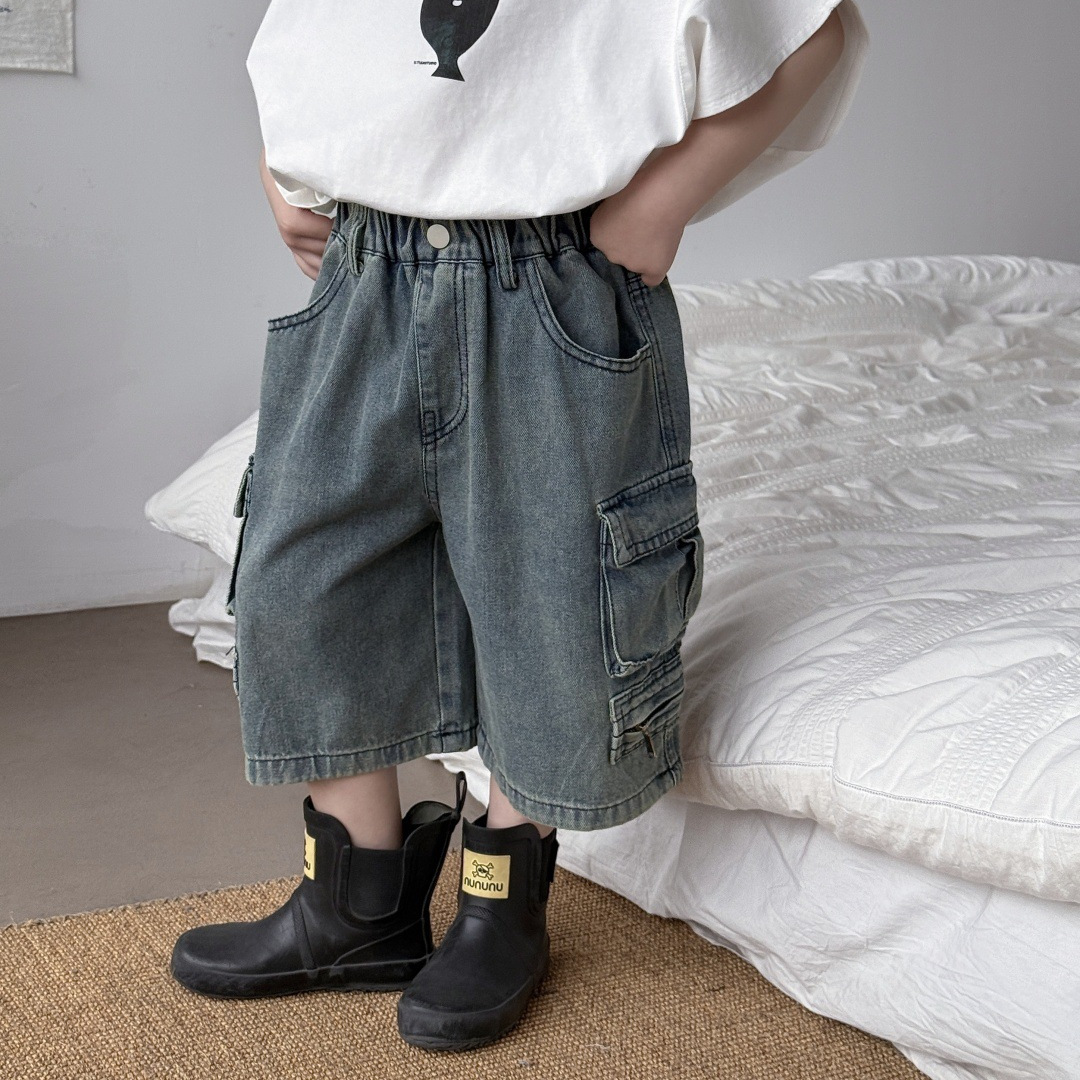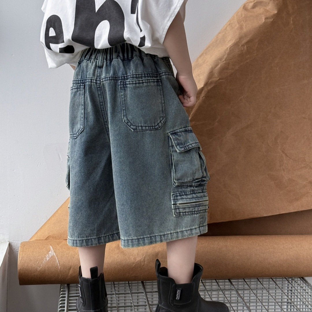 童装2025春季新品短裤儿童百搭帅气工装牛仔裤男童复古直筒中裤潮