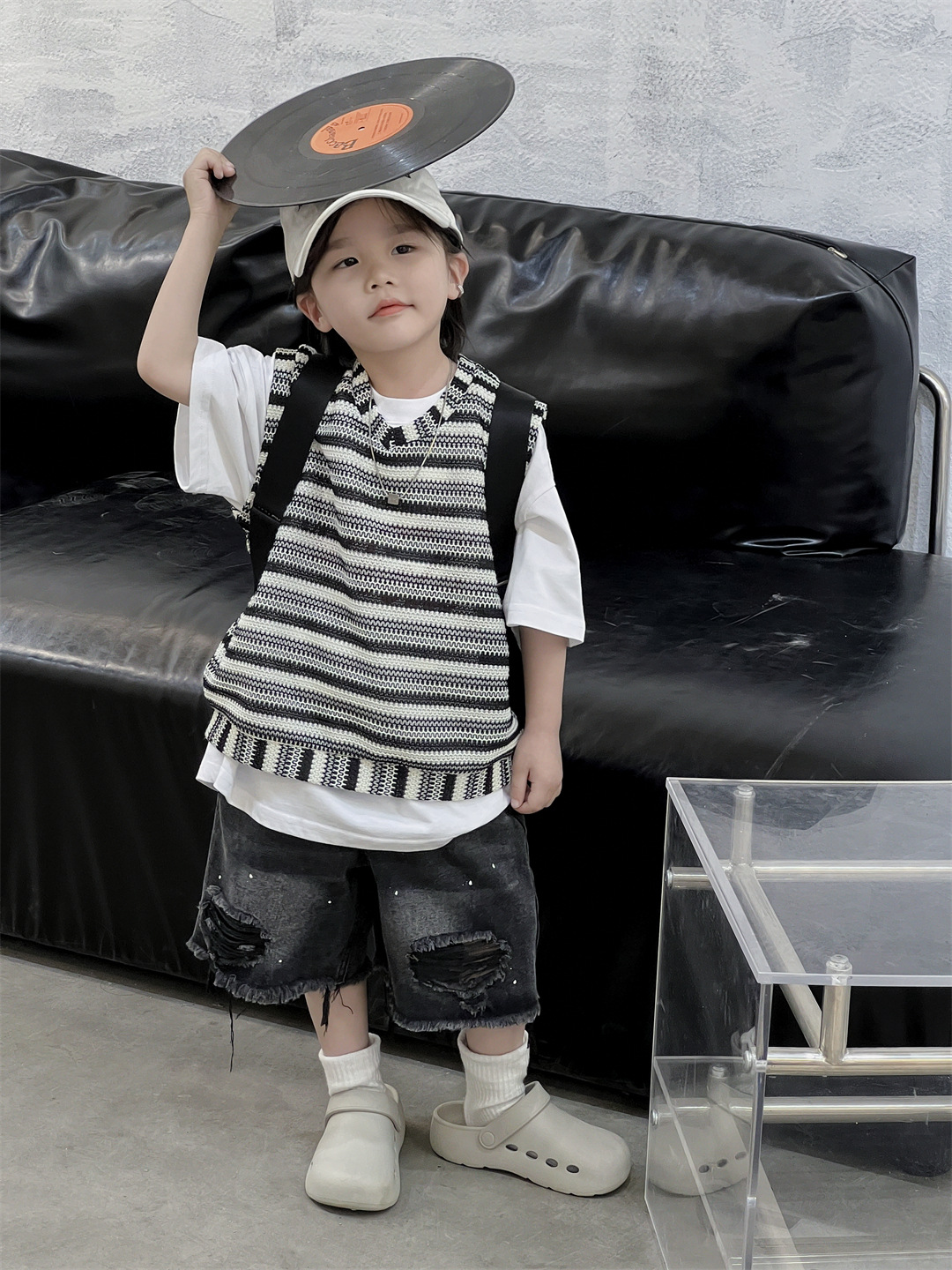 阿羊阿木2025年儿童牛仔裤做旧短裤洋气潮裤男童甩漆裤子磨破童装