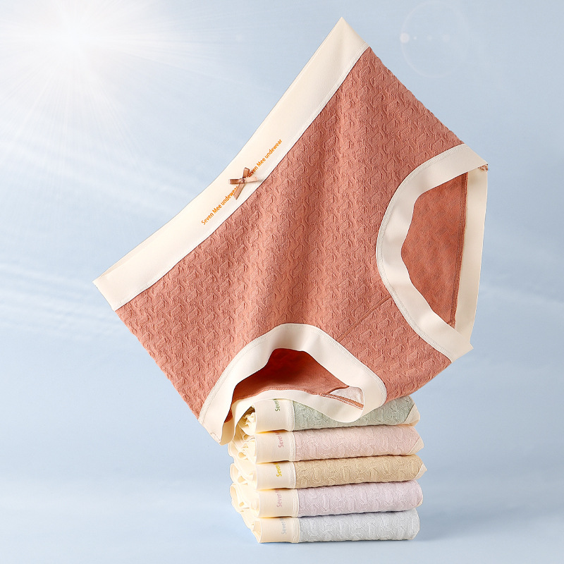内裤女士纯棉提花5A抗菌蚕丝裆中腰女生内裤