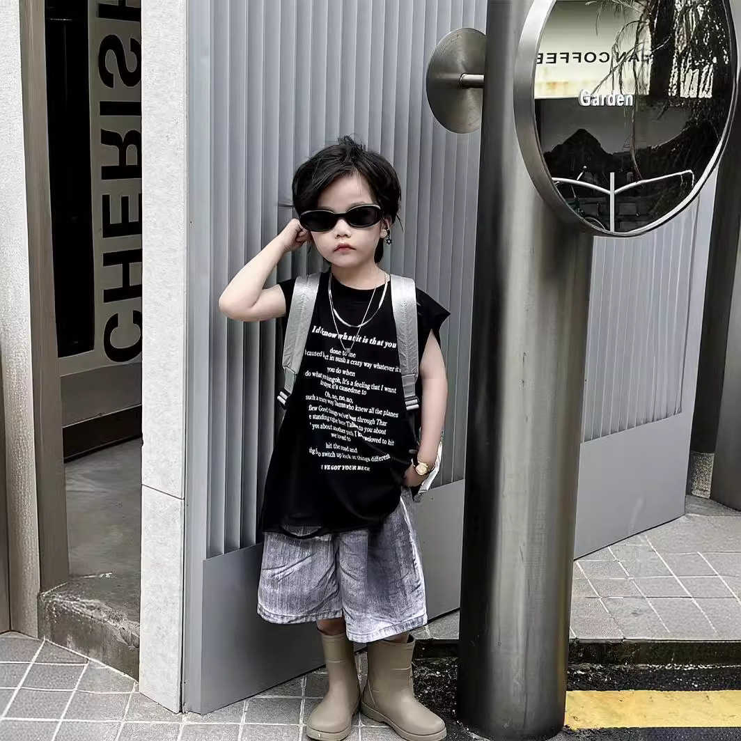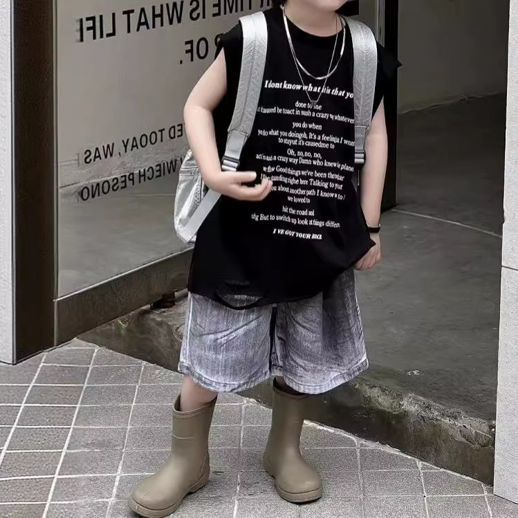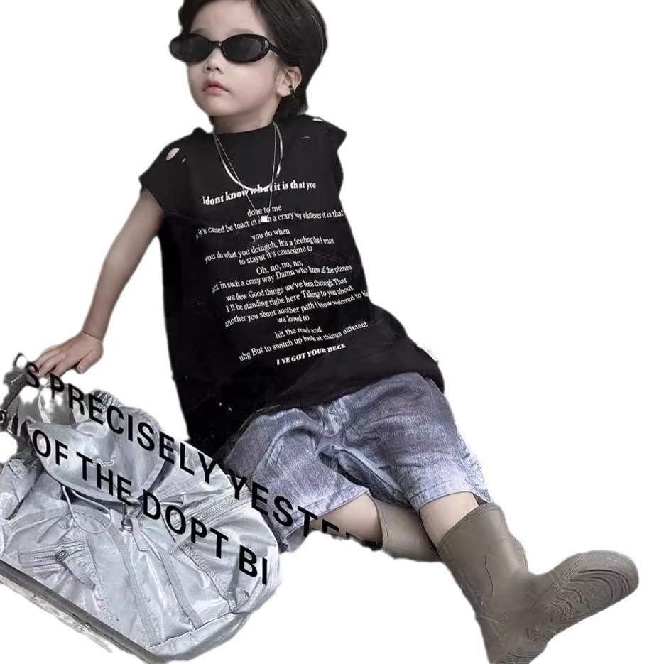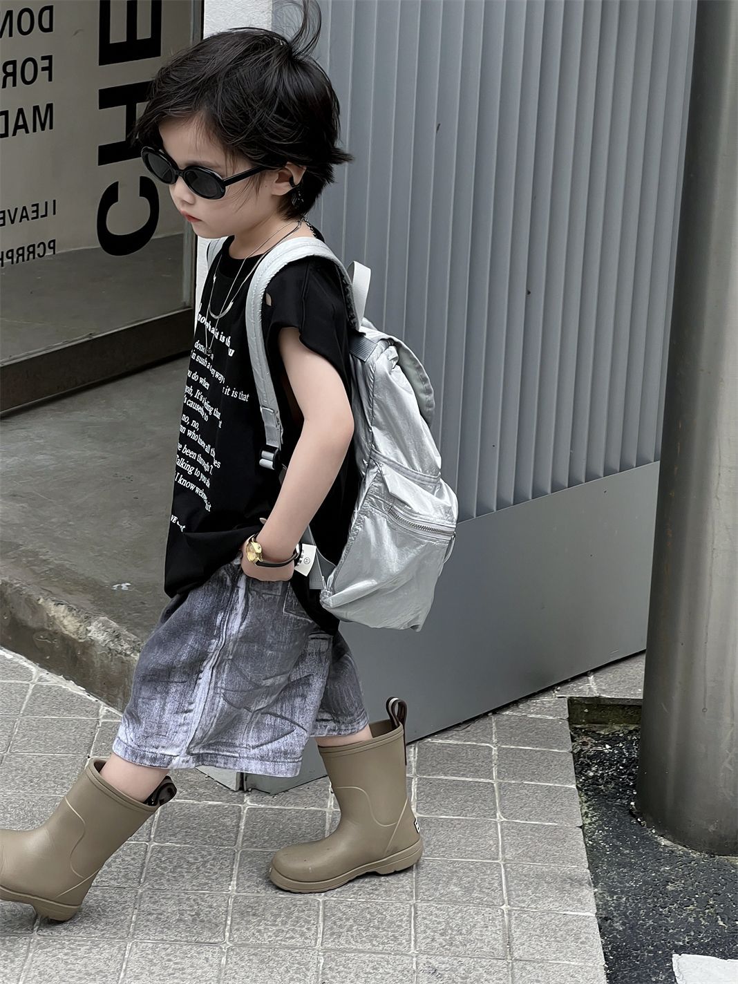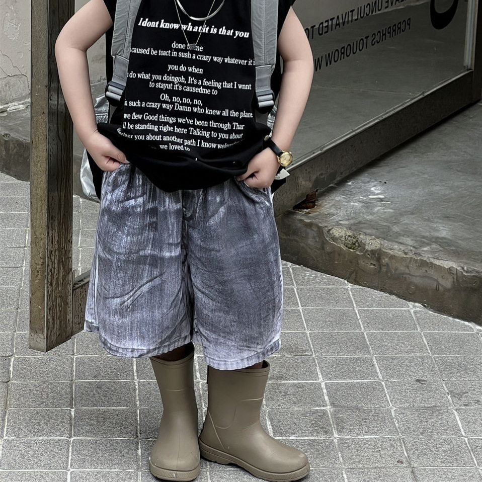 儿童牛仔短裤脏染手工擦脏裤子洋气时尚男童中小童五分裤