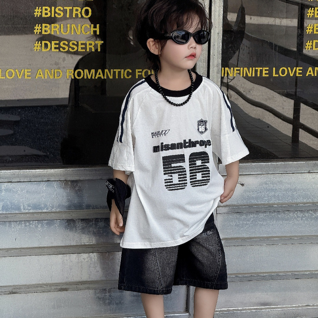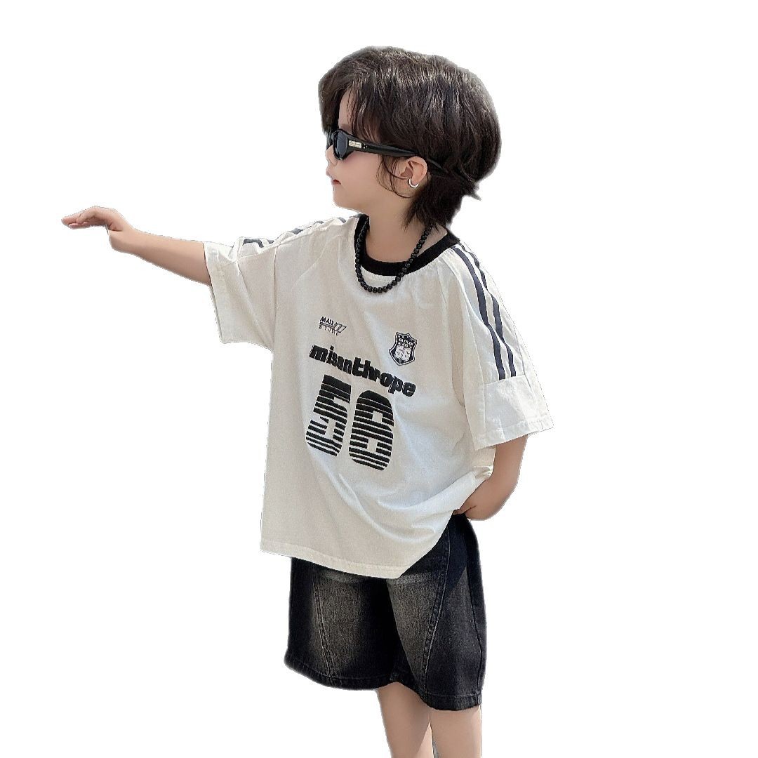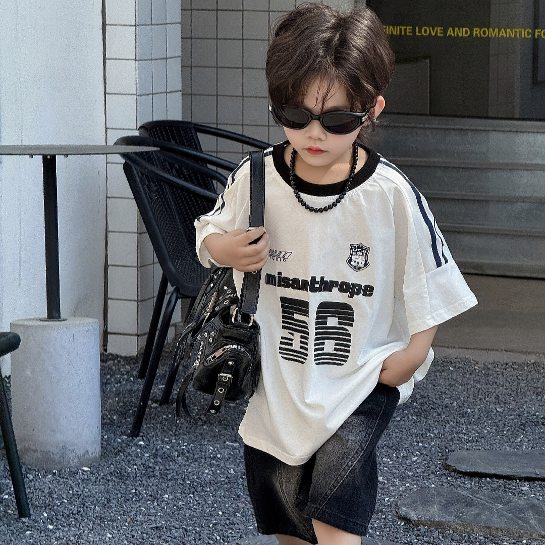 童装儿童T恤男童印花T恤数字洋气男孩运动上衣夏季新款半袖2025年