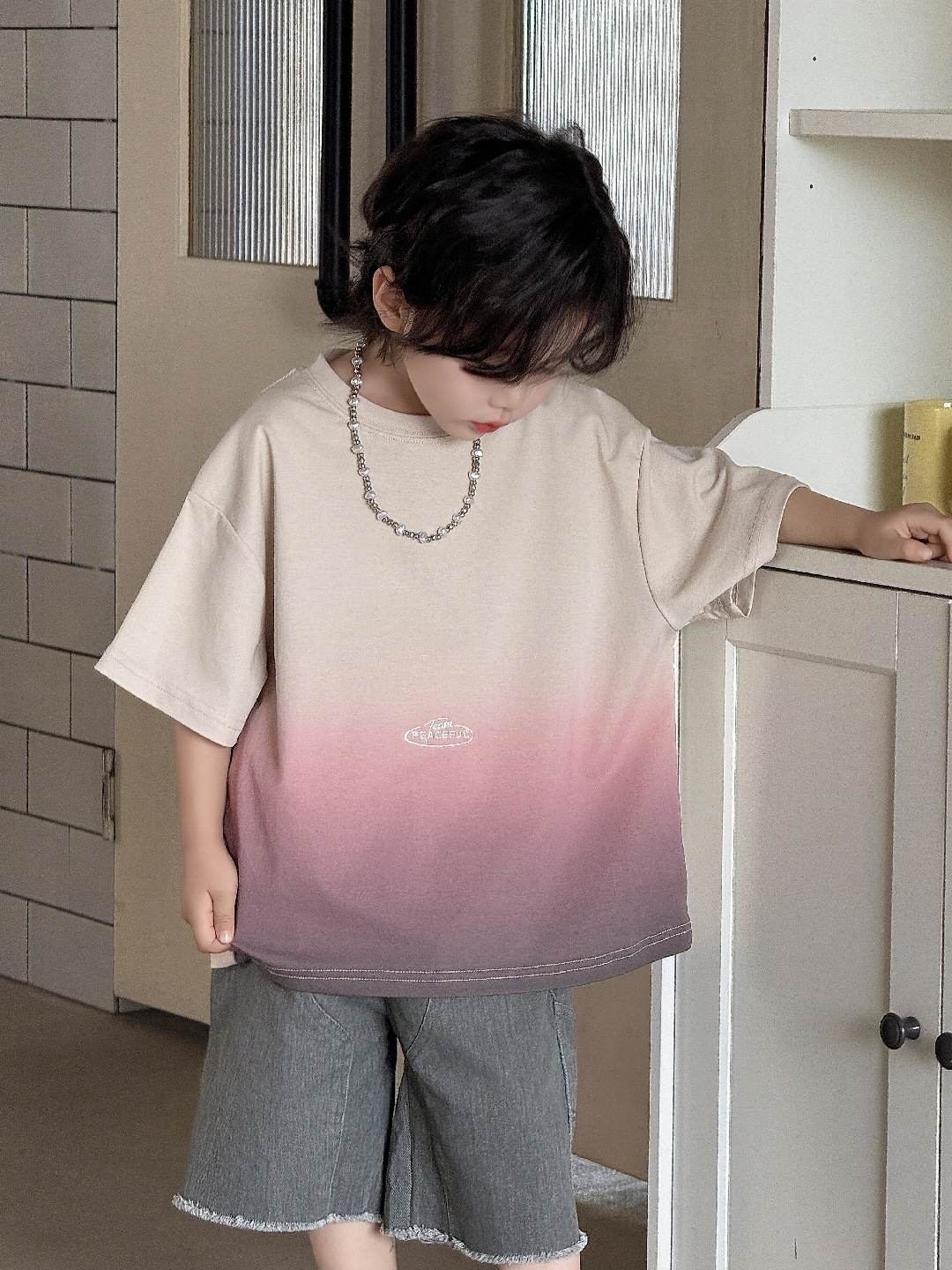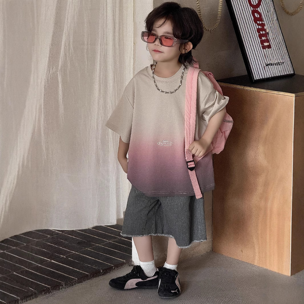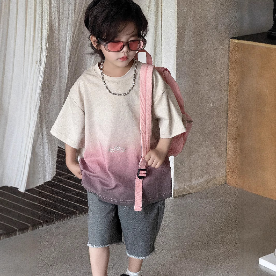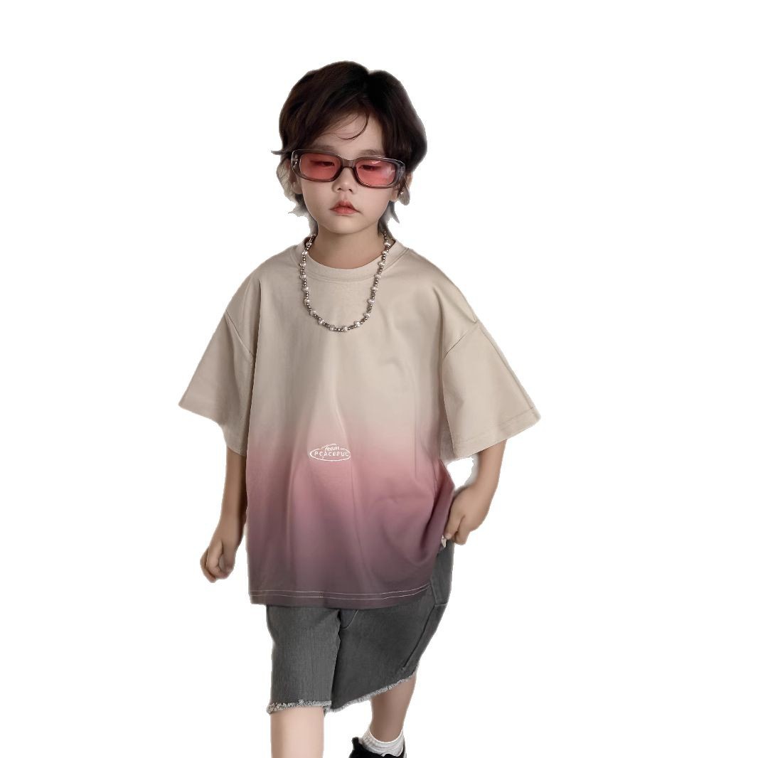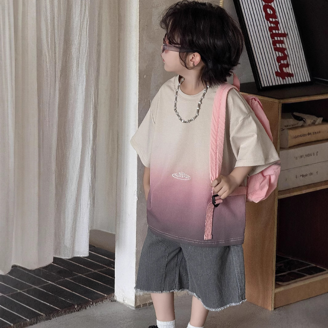 2025男童上衣男宝渐变短袖t恤夏季新款宽松渐变多巴胺穿搭设计感