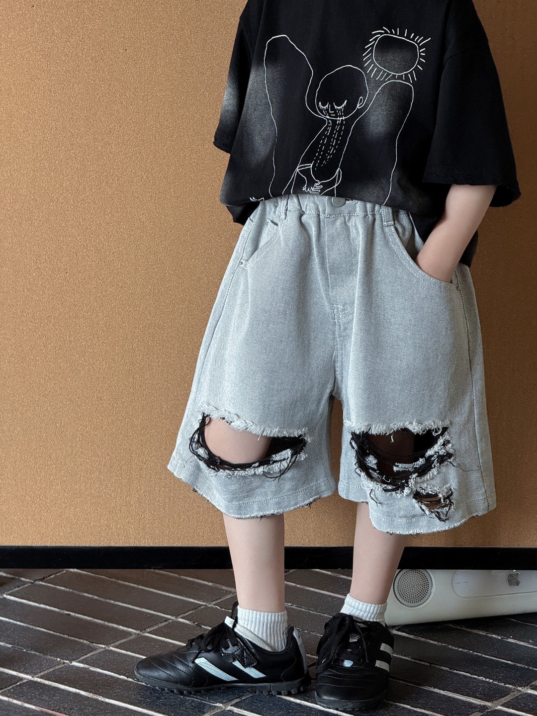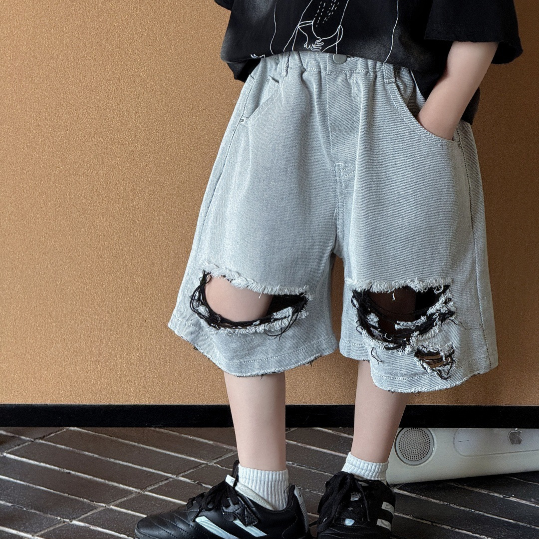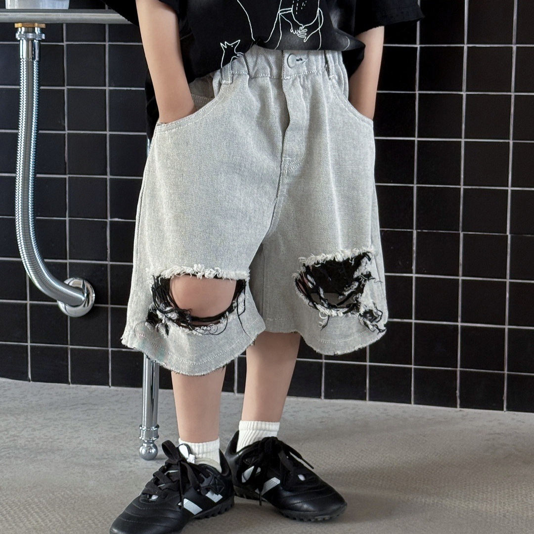 2025年夏季男童儿童男宝美式复古牛仔直筒宽松阔腿中裤新款时尚潮