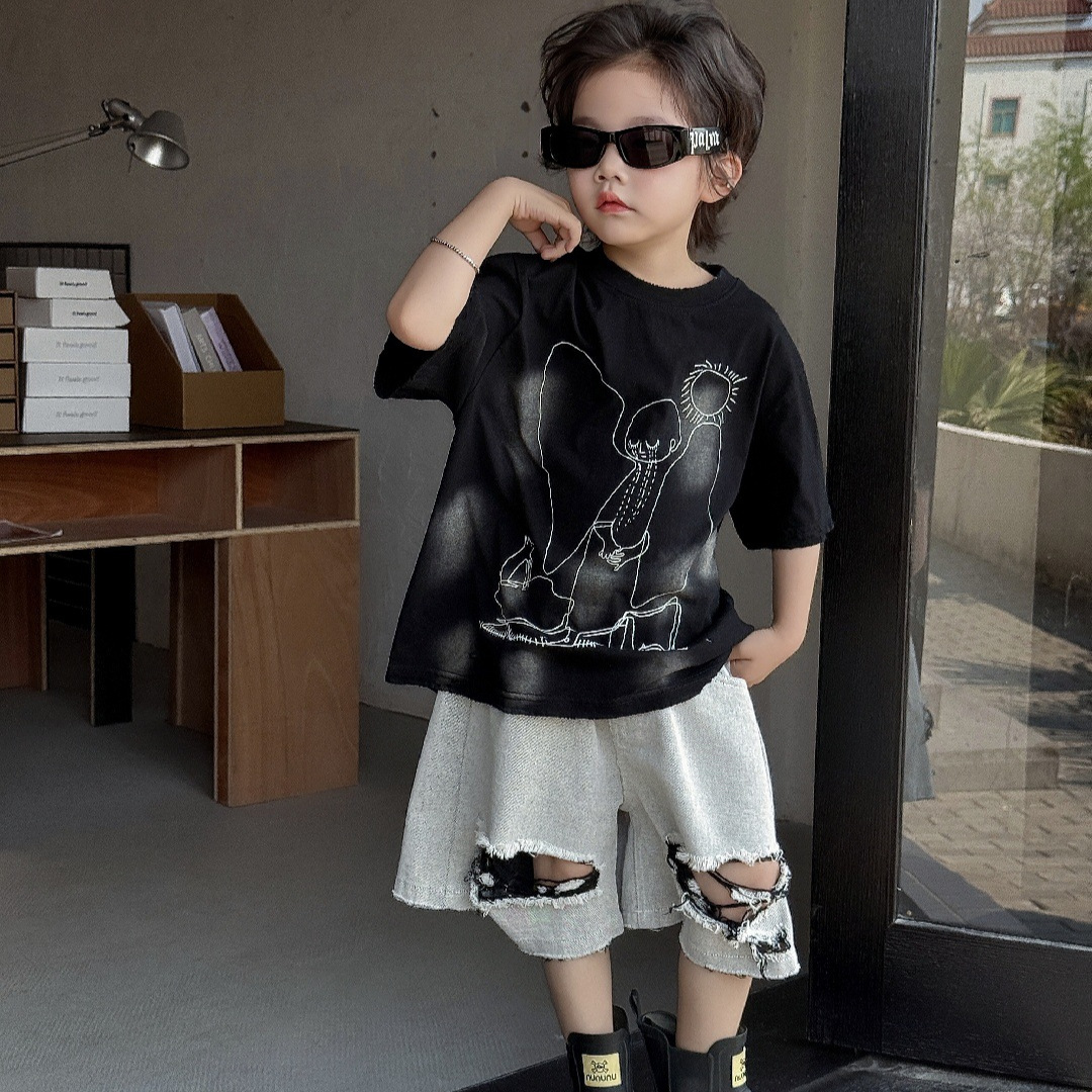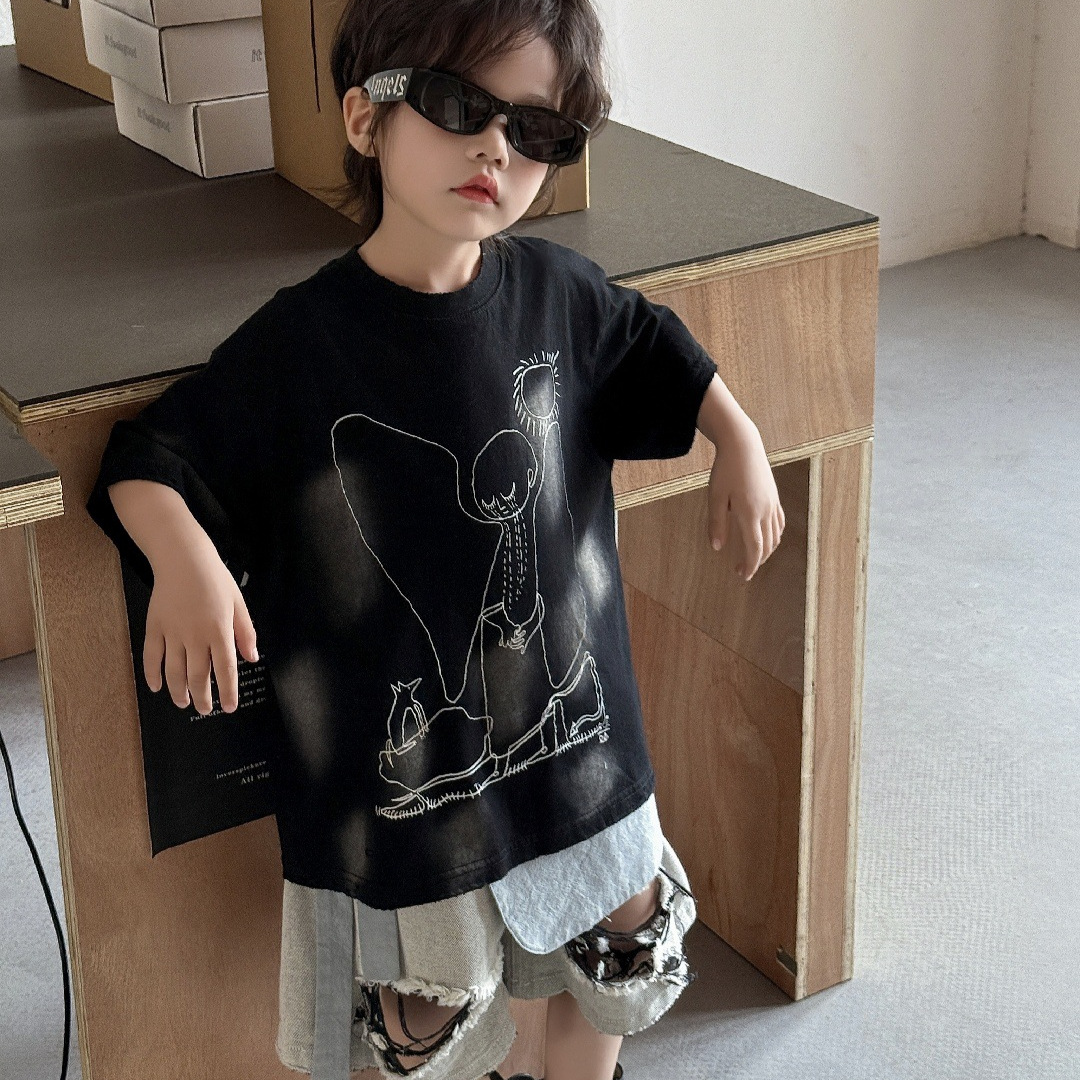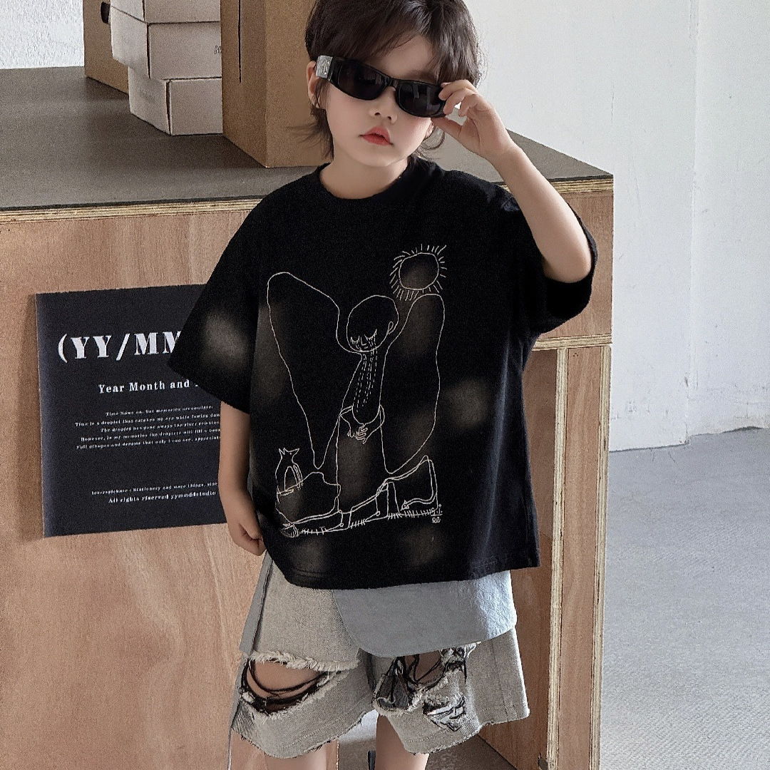 童装儿童T恤2025夏季男孩短袖半袖男宝潮范印花上衣宽松美式洋气