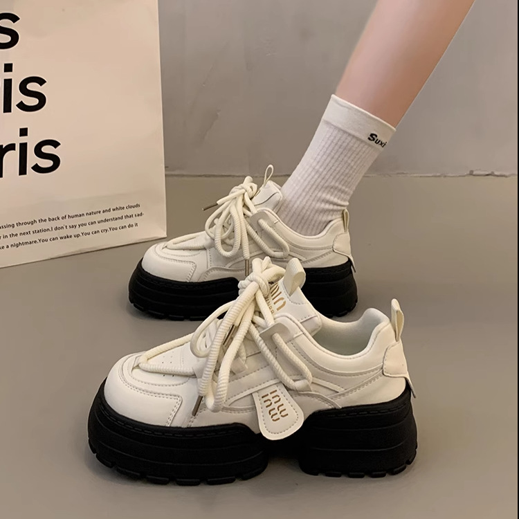 高级感百搭小白鞋增高厚底板鞋女新款秋季松糕休闲运动老爹鞋