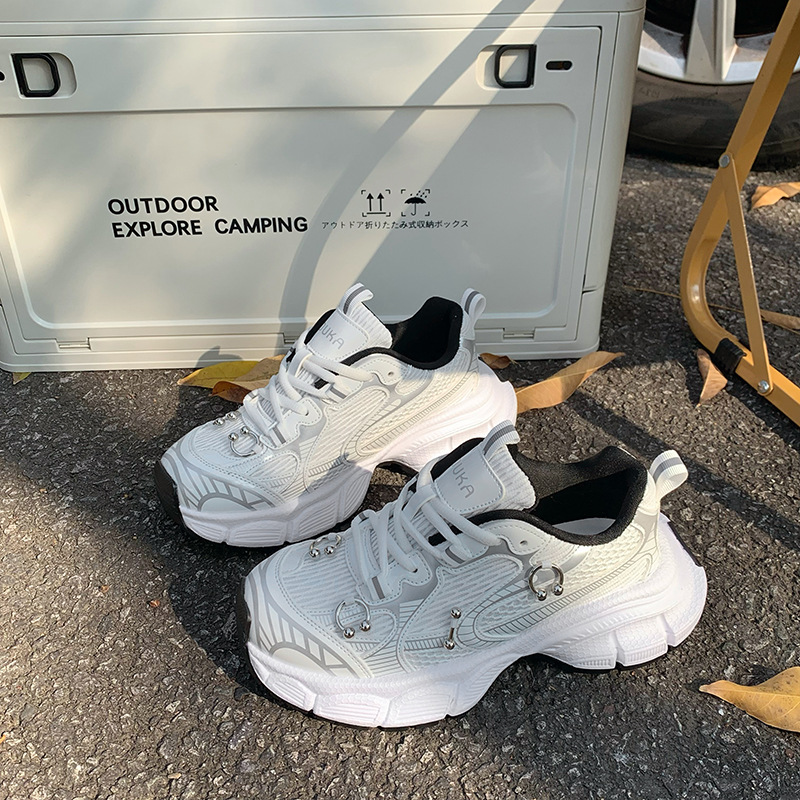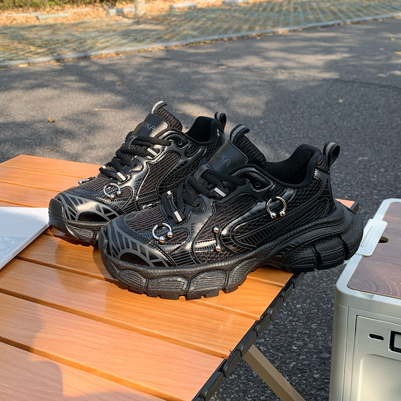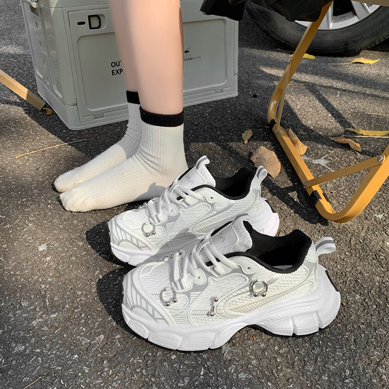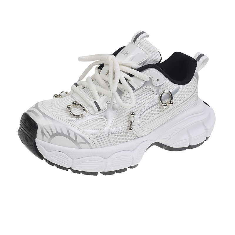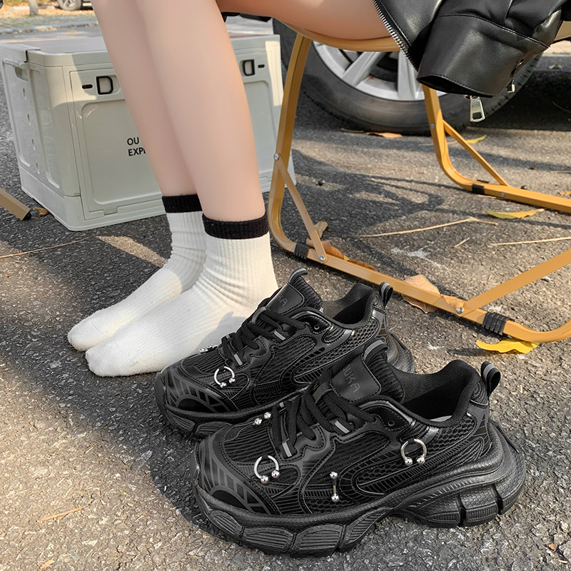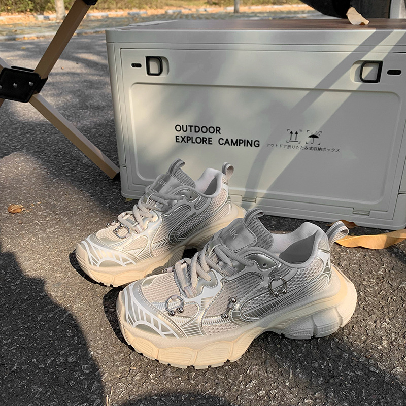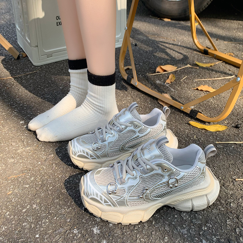 炸街老爹鞋女2025春季新款金属铆钉网面拼接复古百搭休闲运动鞋潮