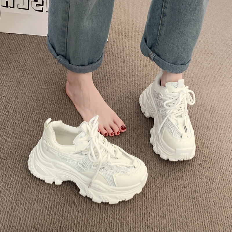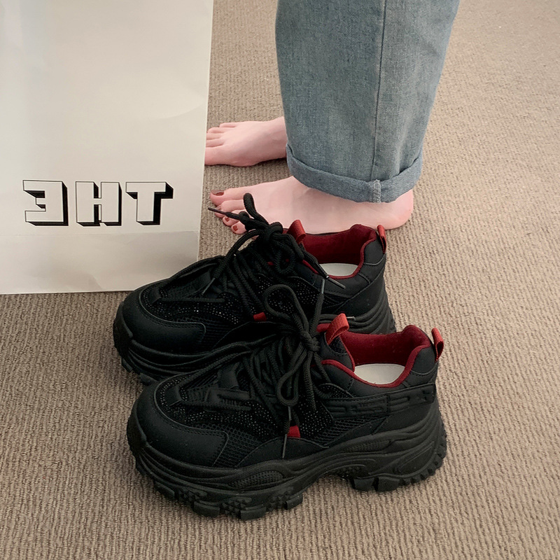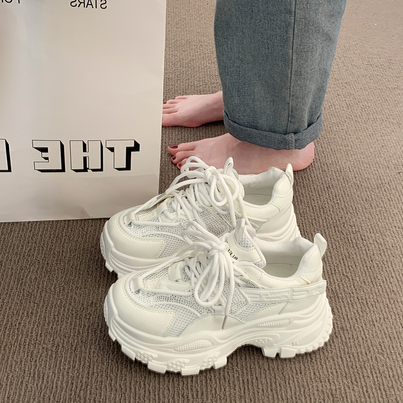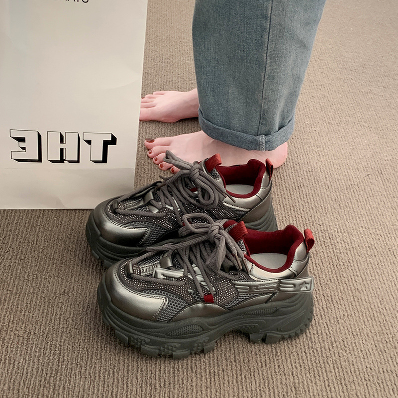 小个子厚底增高软皮老爹鞋女单鞋2025秋季新款百搭松糕休闲运动鞋