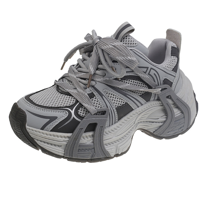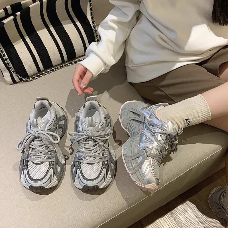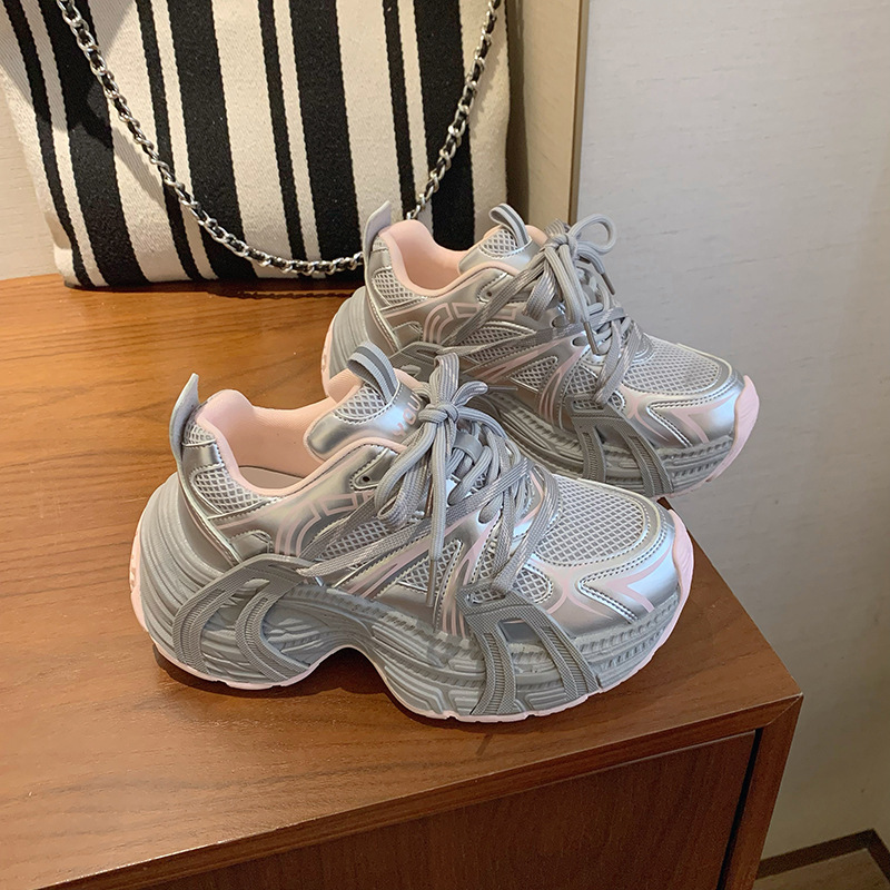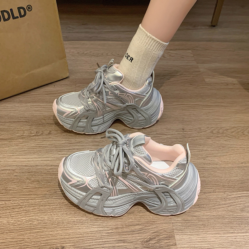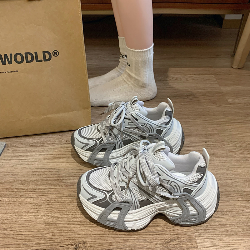 小众系带厚底老爹鞋女2025春季新款网面百搭小个子运动绑带休闲鞋