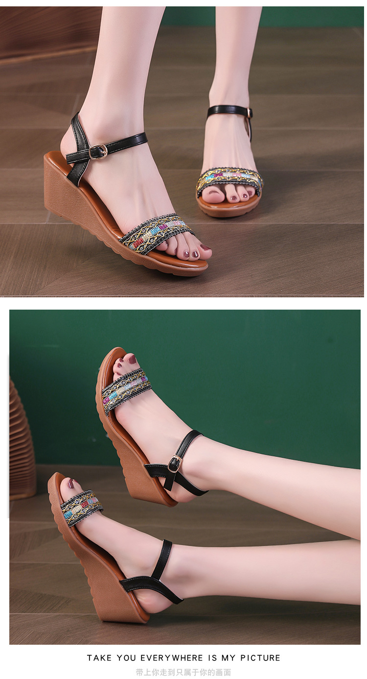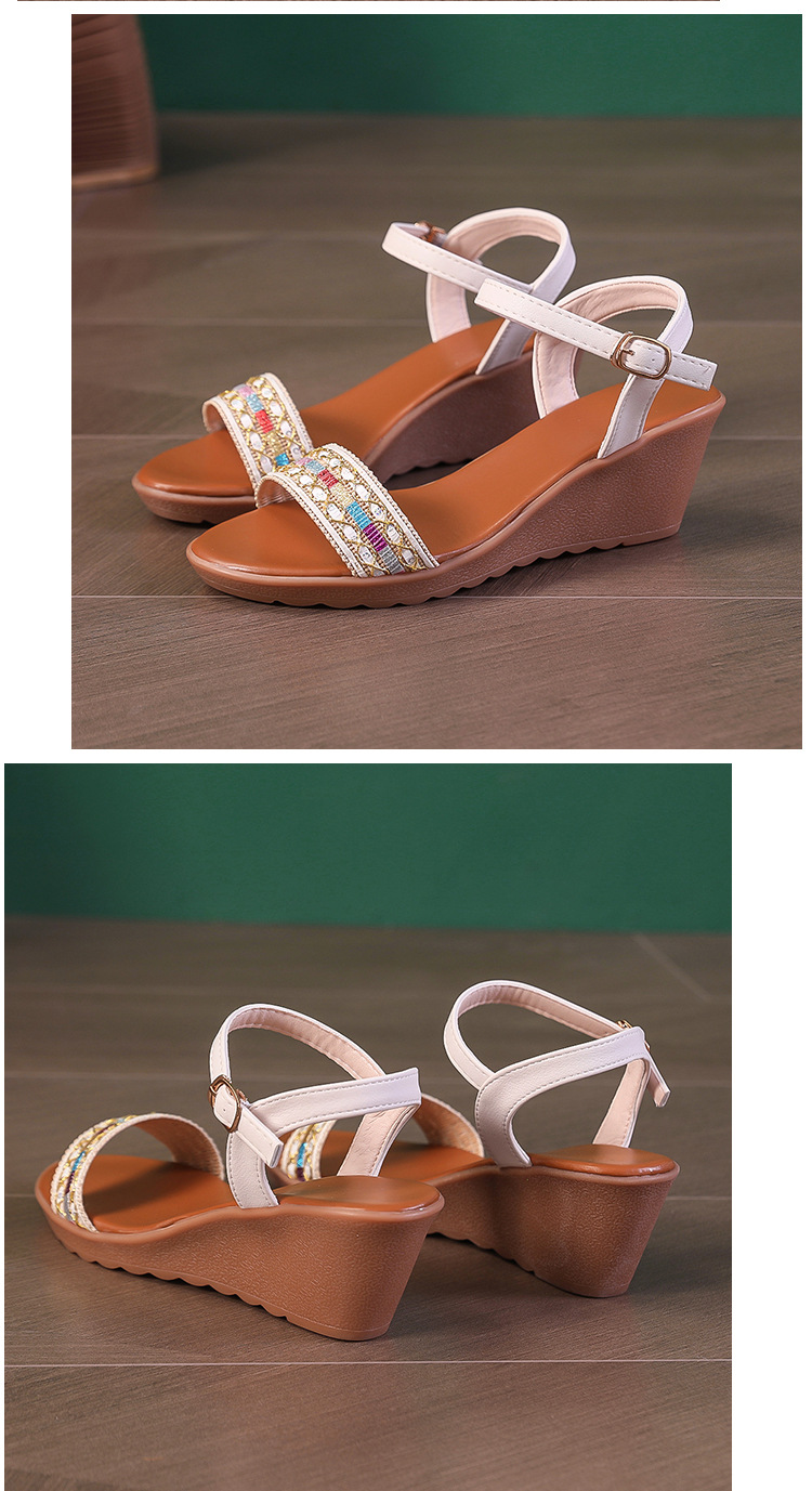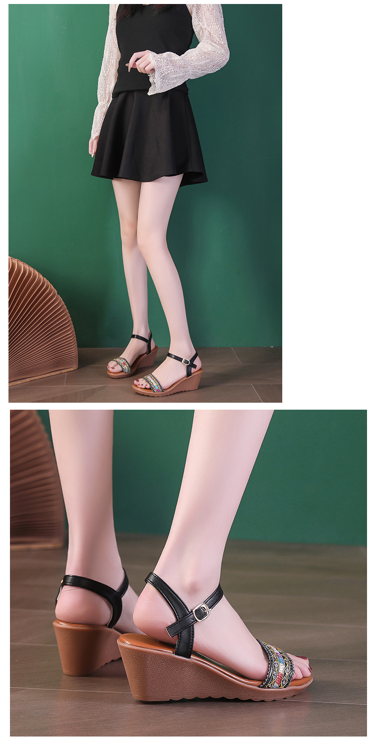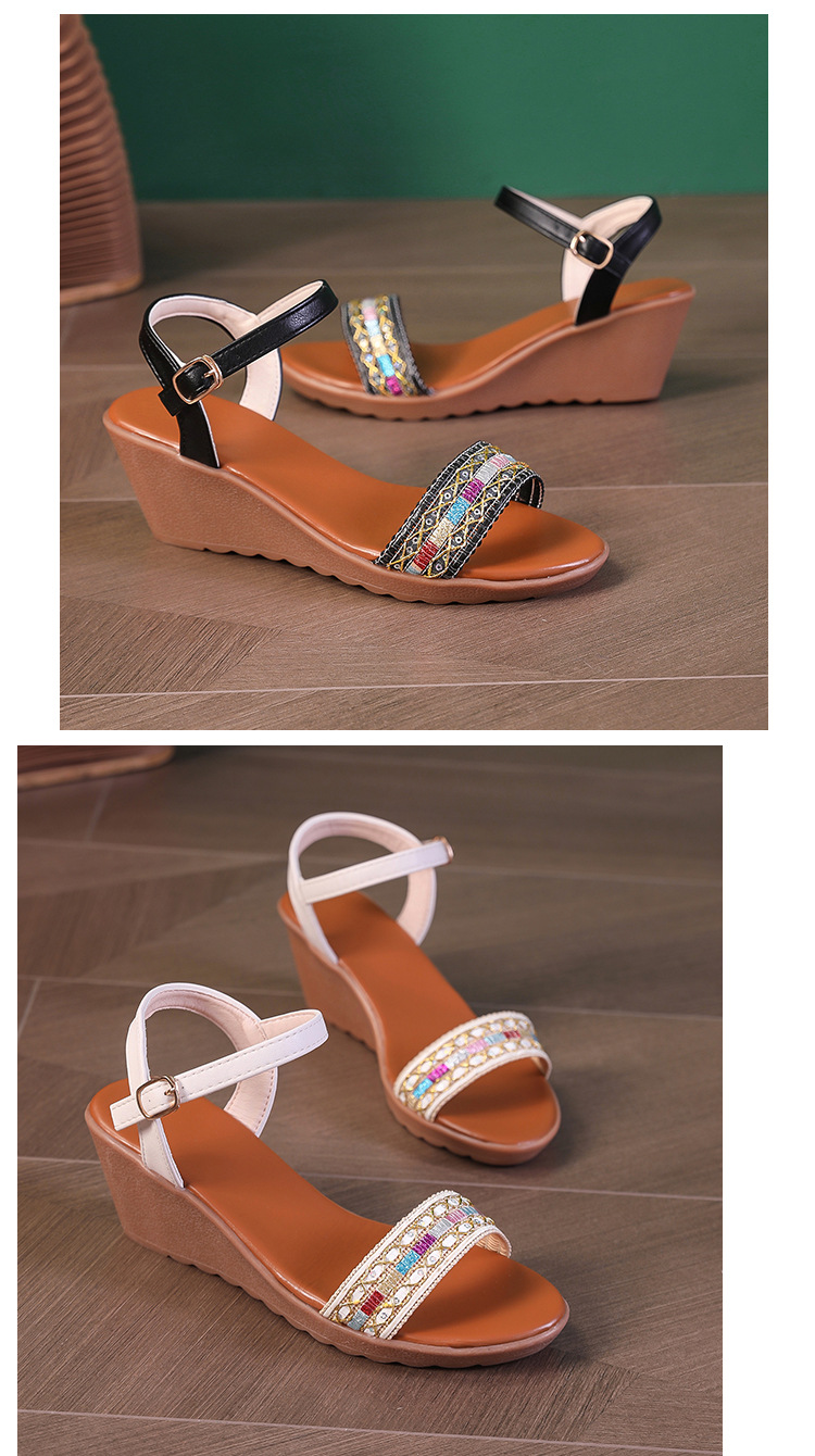 外贸坡跟拖鞋女2025年夏季新款波西米亚风厚底轻便女士跨境凉拖鞋