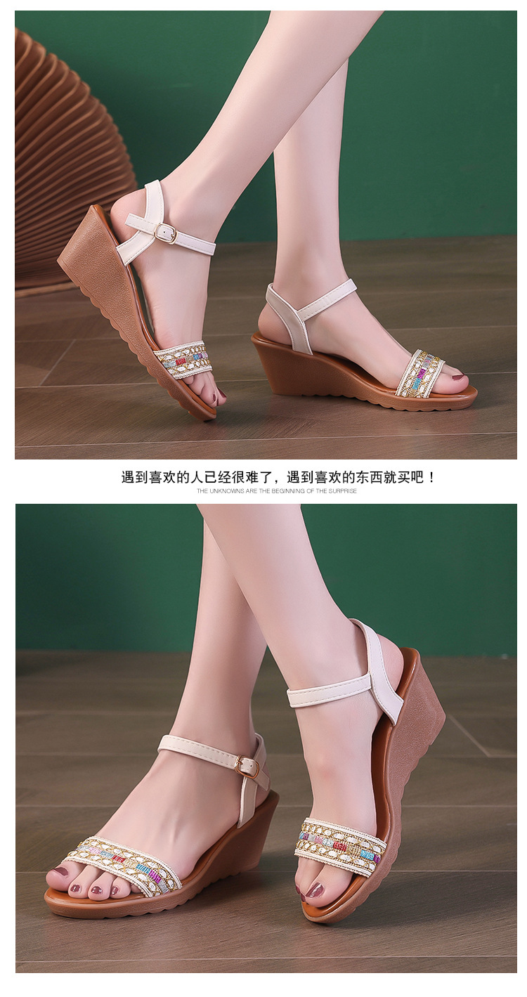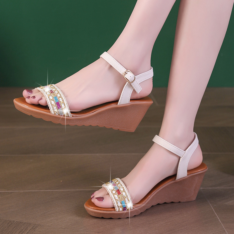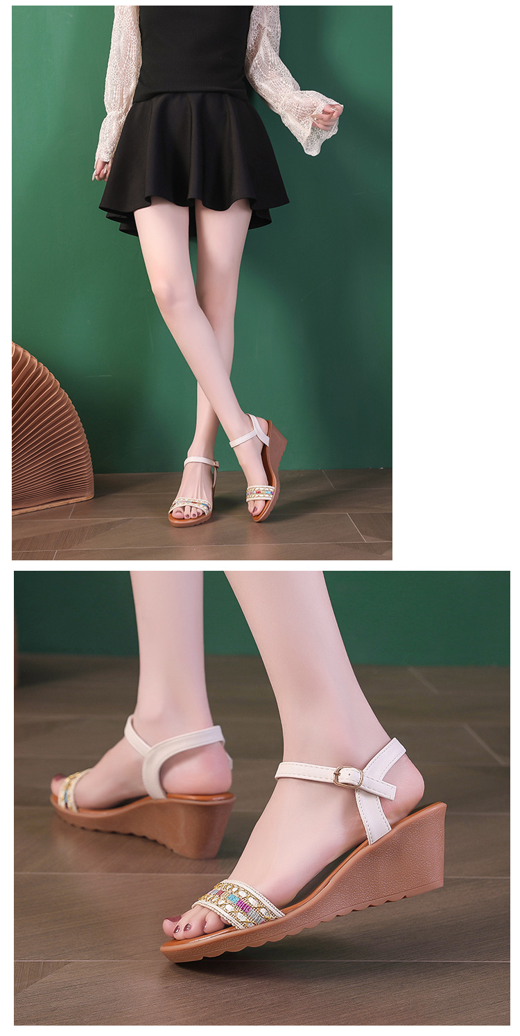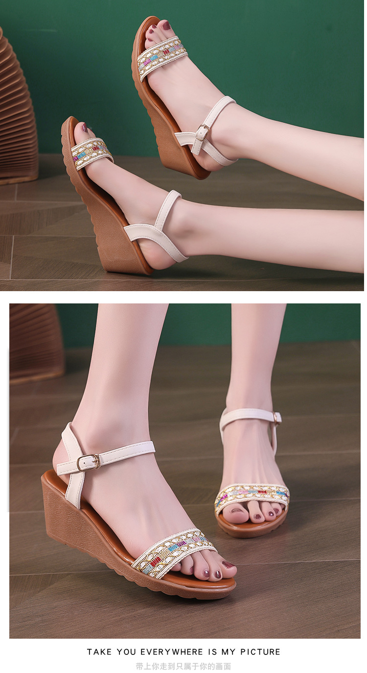 外贸坡跟拖鞋女2025年夏季新款波西米亚风厚底轻便女士跨境凉拖鞋