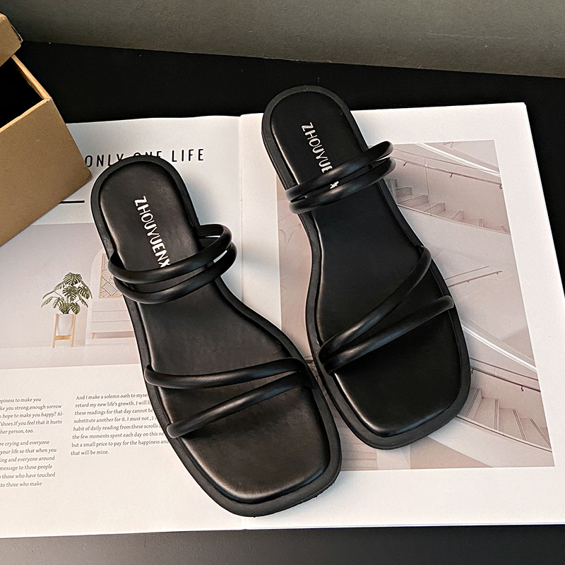 法式晚风一字拖鞋女夏季外穿2025年新款韩版仙女复古细带平底凉鞋