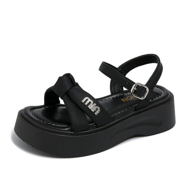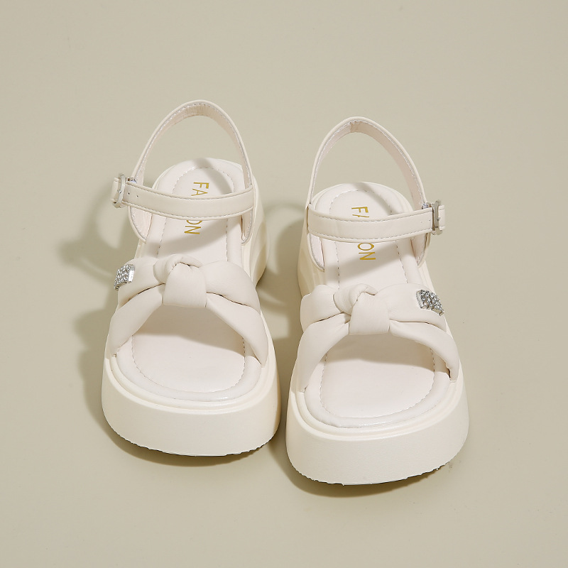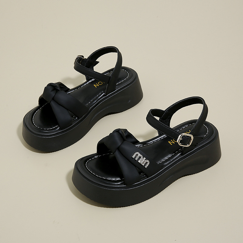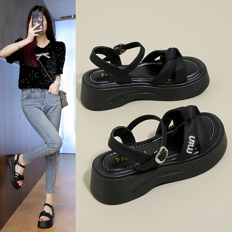 蝴蝶结厚底凉鞋女外穿2025夏季新款法式松糕罗马鞋仙女风一字凉鞋