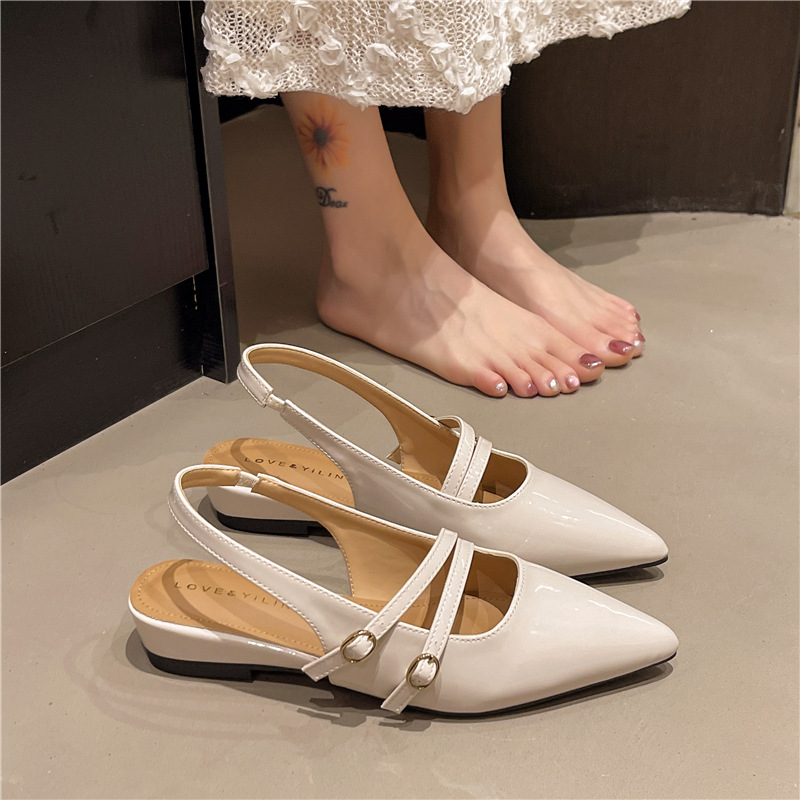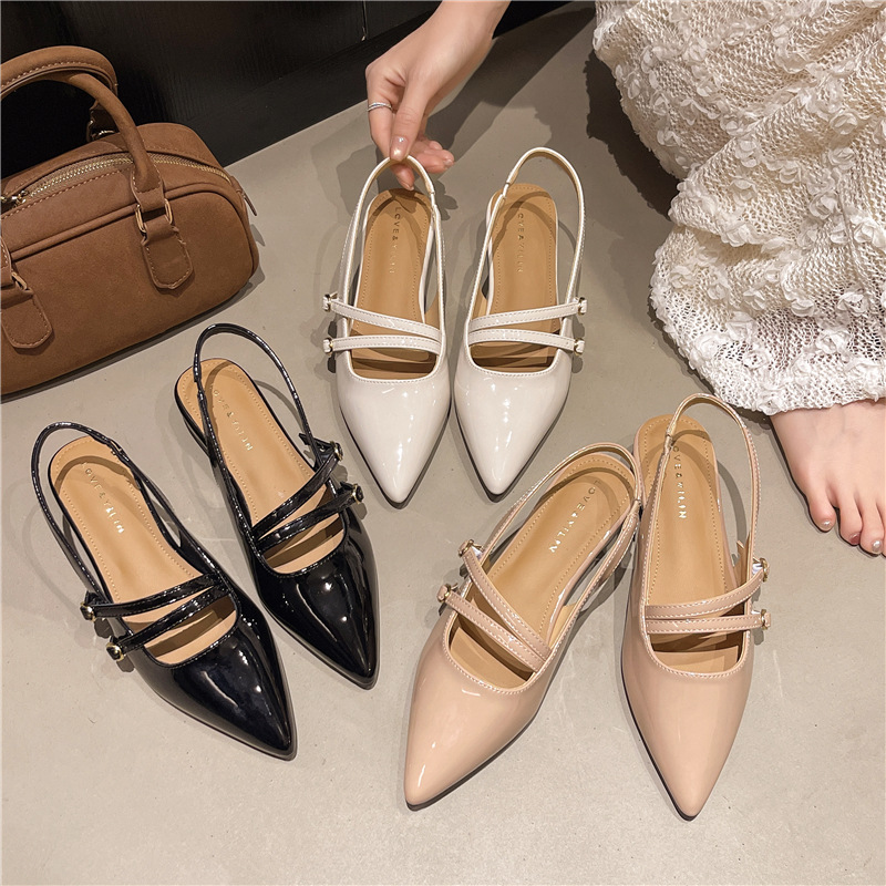 尖头粗跟气质高跟鞋女2025夏季新款仙女风后空小众设计感包头凉鞋